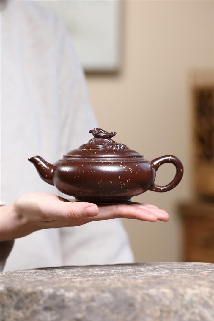 【作品介紹】此款壺形線條流暢,壺把,壺嘴,壺身壹氣呵成栩栩如生,是收藏把玩的好壺,泥料色澤古樸典雅,日久使用,漸露鋒芒,養成變化快,溫潤莊重,用其泡茶,使用的年代久,壺身就溫潤,泡出來的茶湯也就醇郁芳馨。