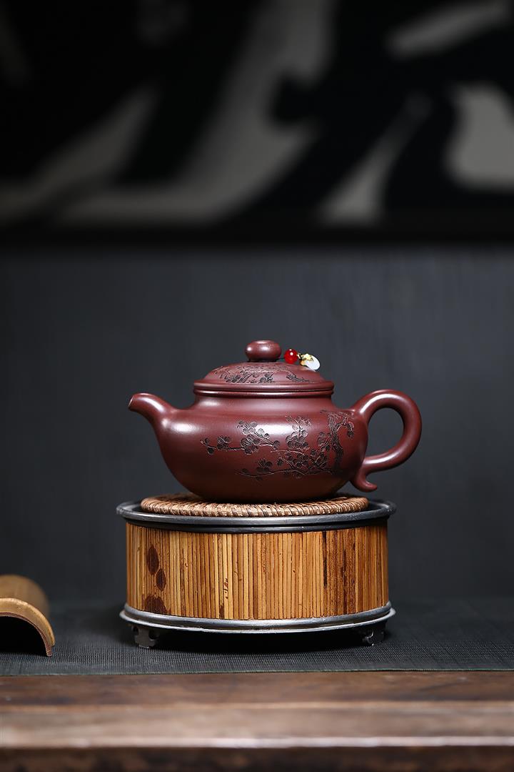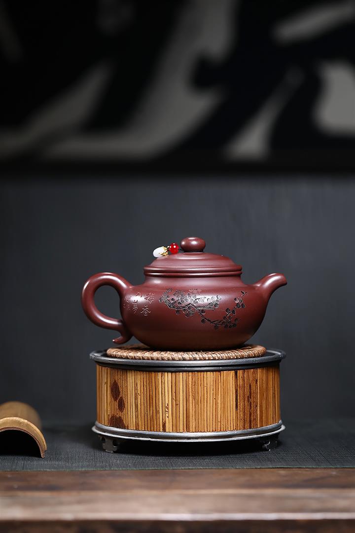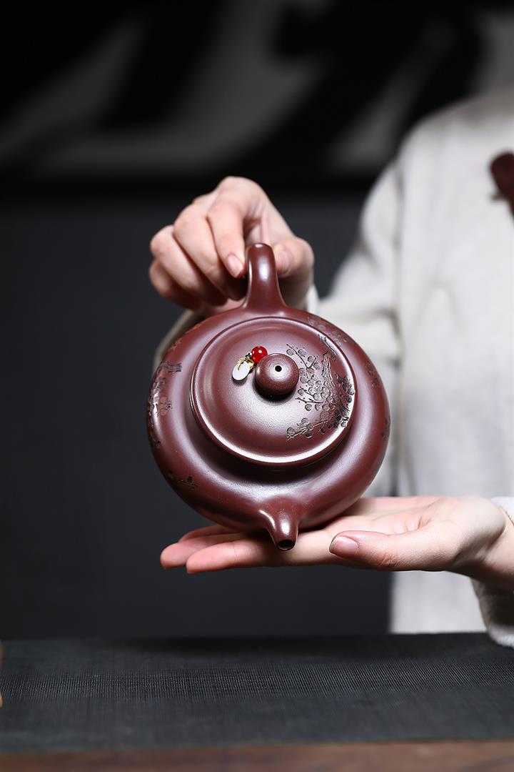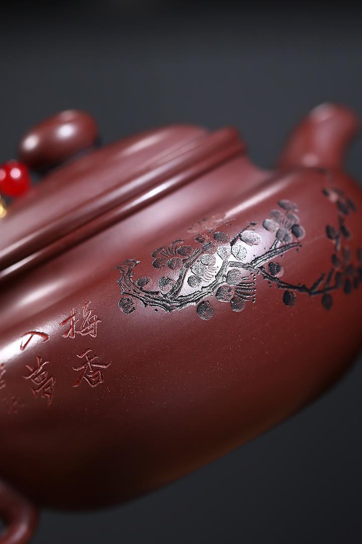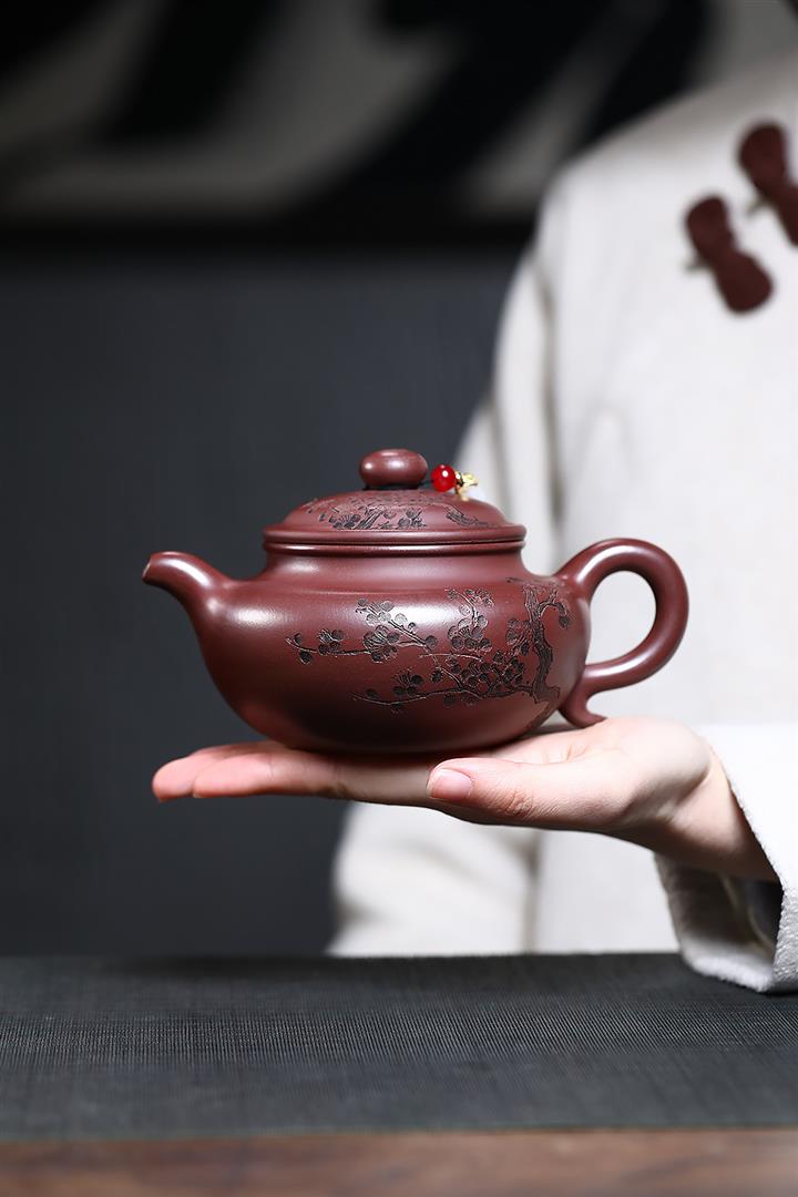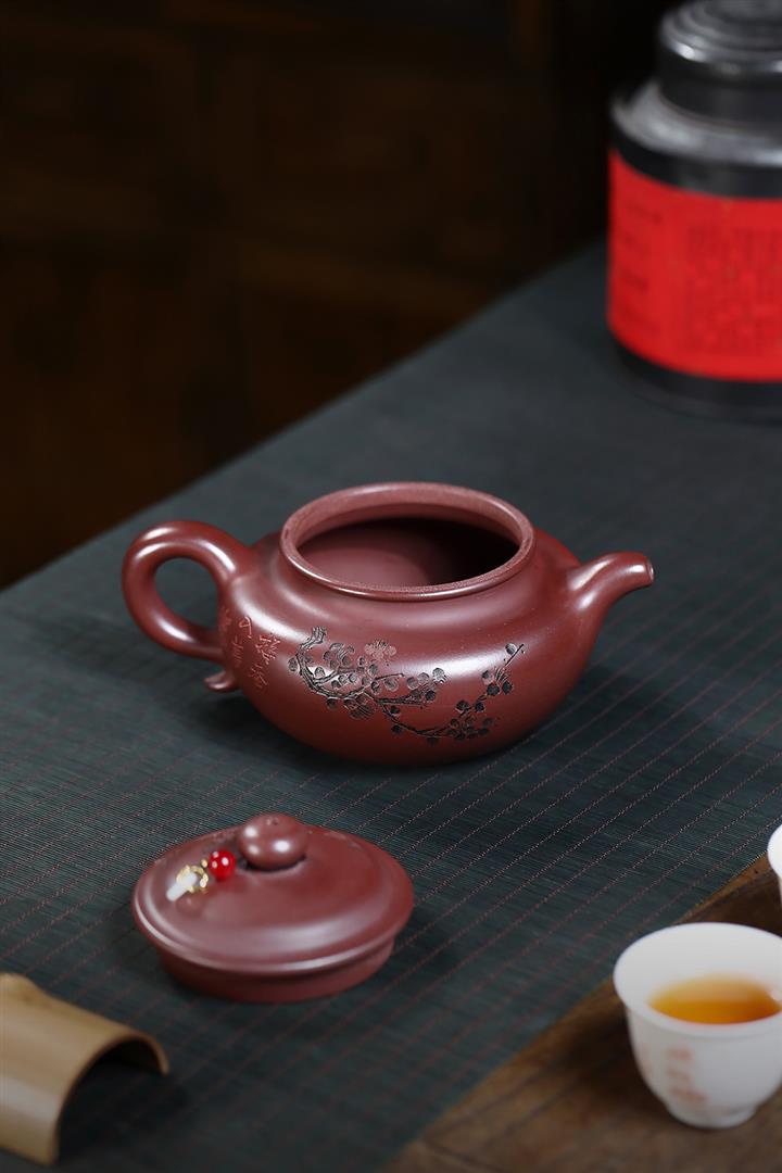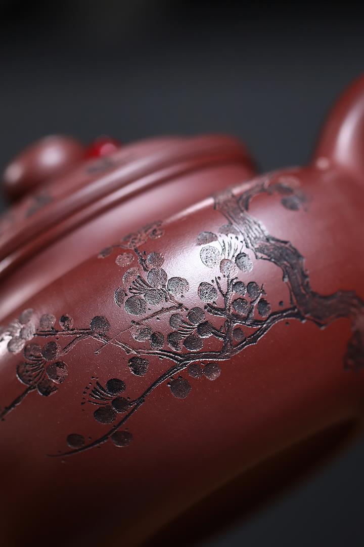 原礦紫朱泥寒梅扁腹仿古紫砂壺POT4780