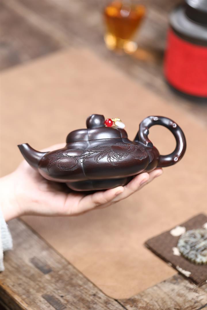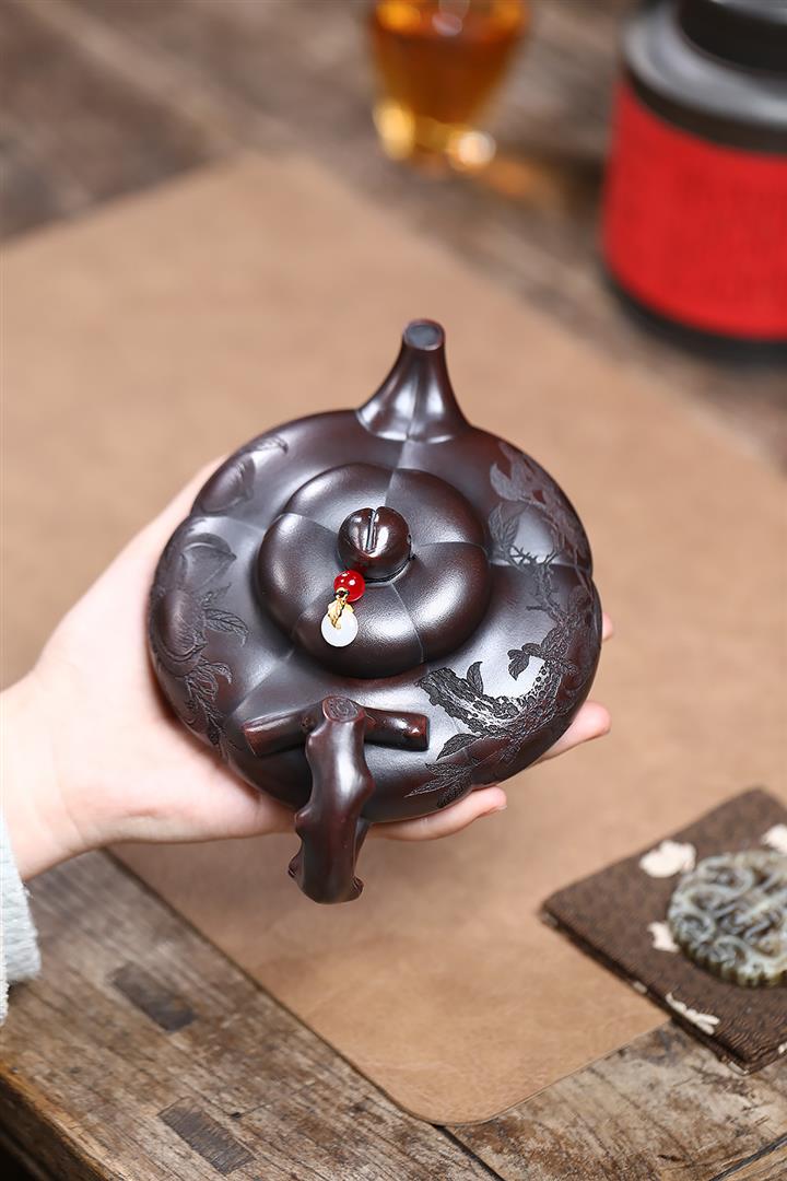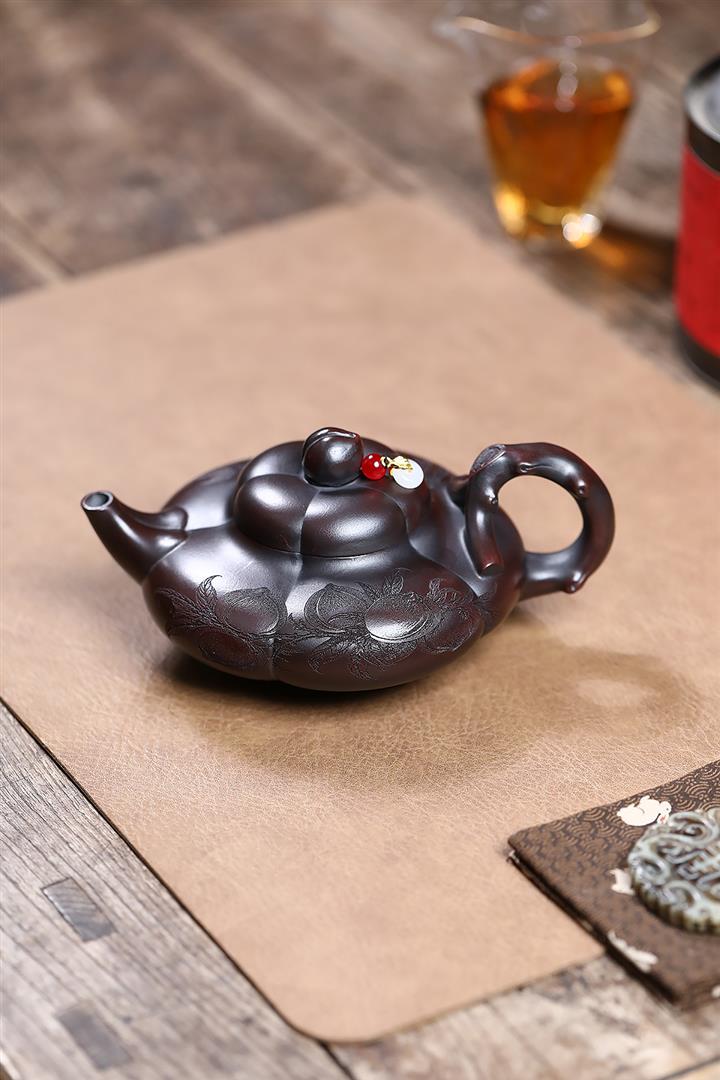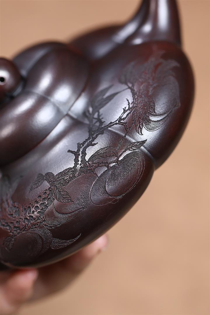原礦大紅袍焐灰吉祥如意茶壺POT7039