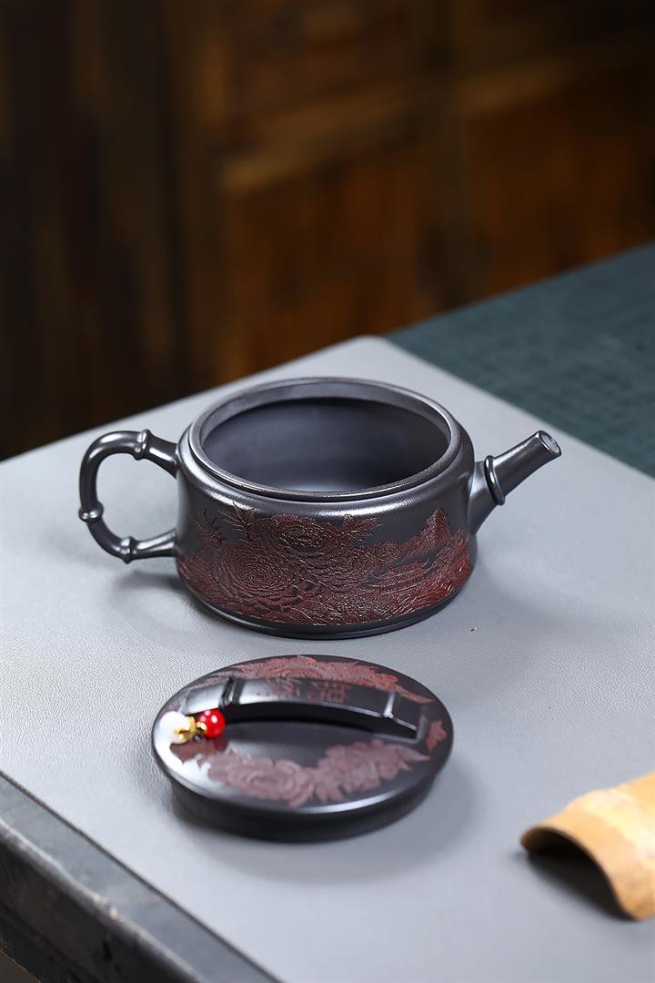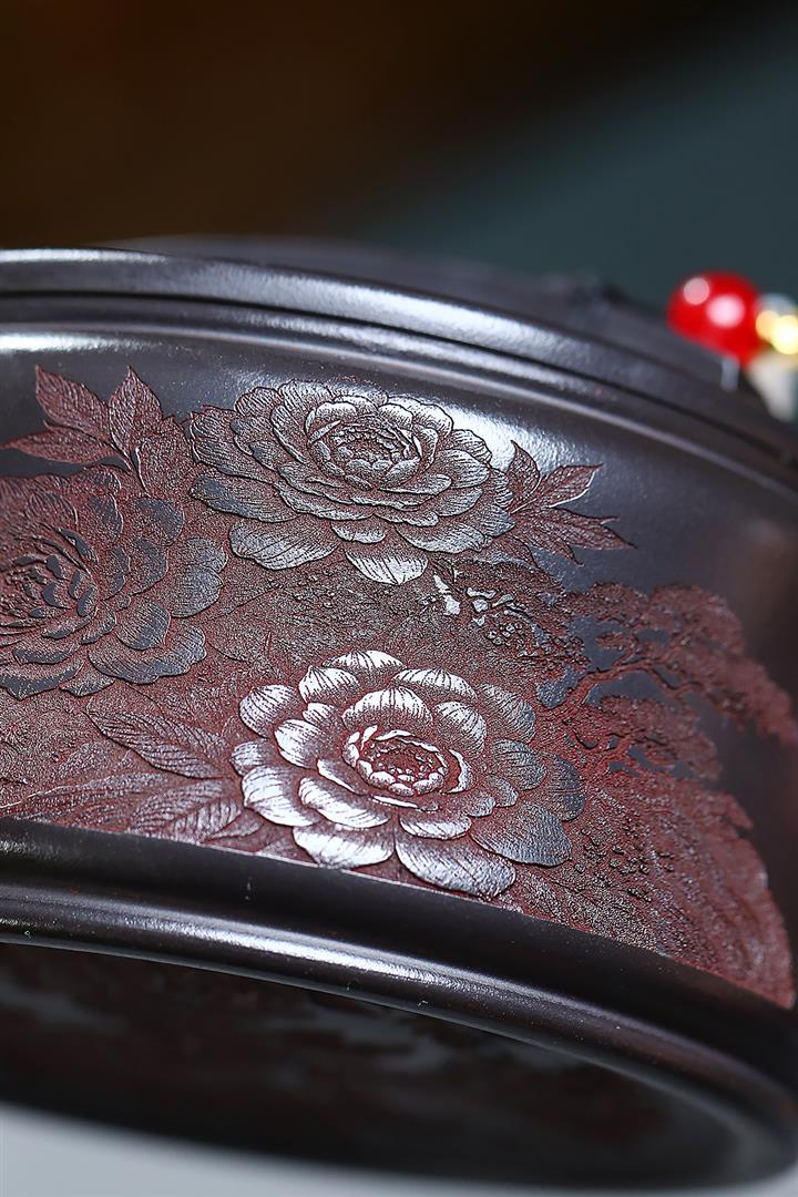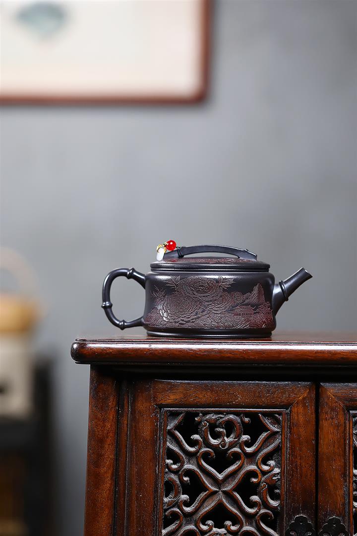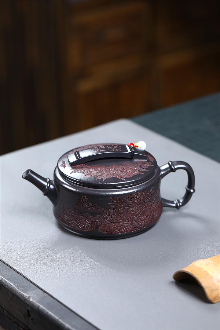 原礦墨綠泥墨梅探雪紫砂壺POT5765