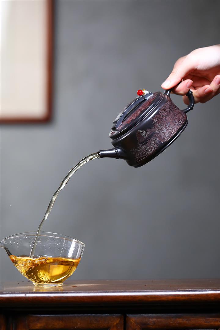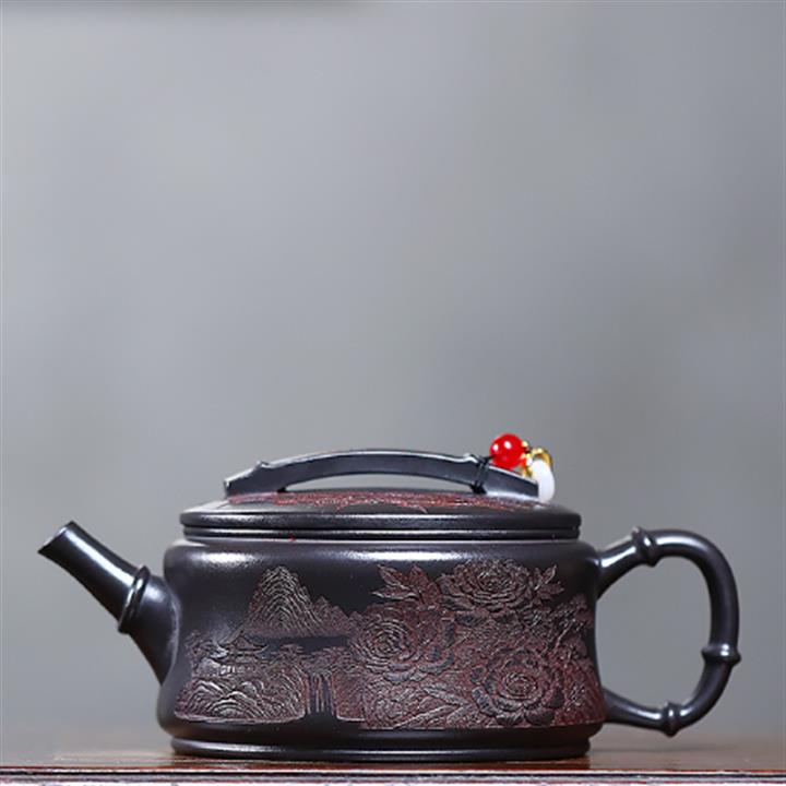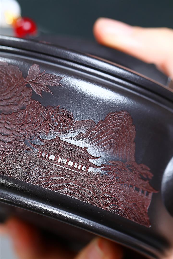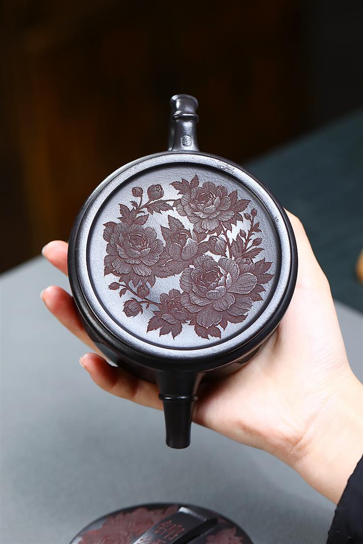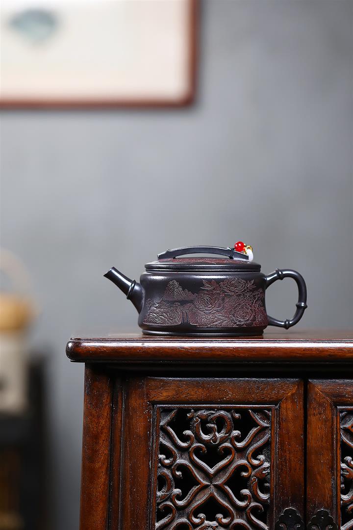 原礦墨綠泥墨梅探雪紫砂壺POT5765