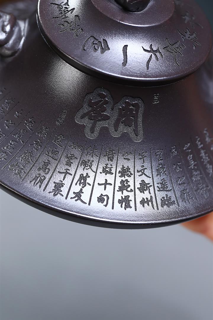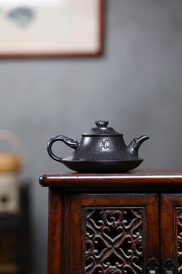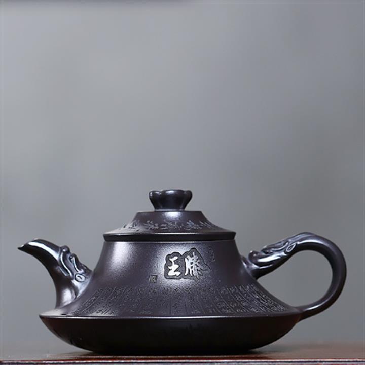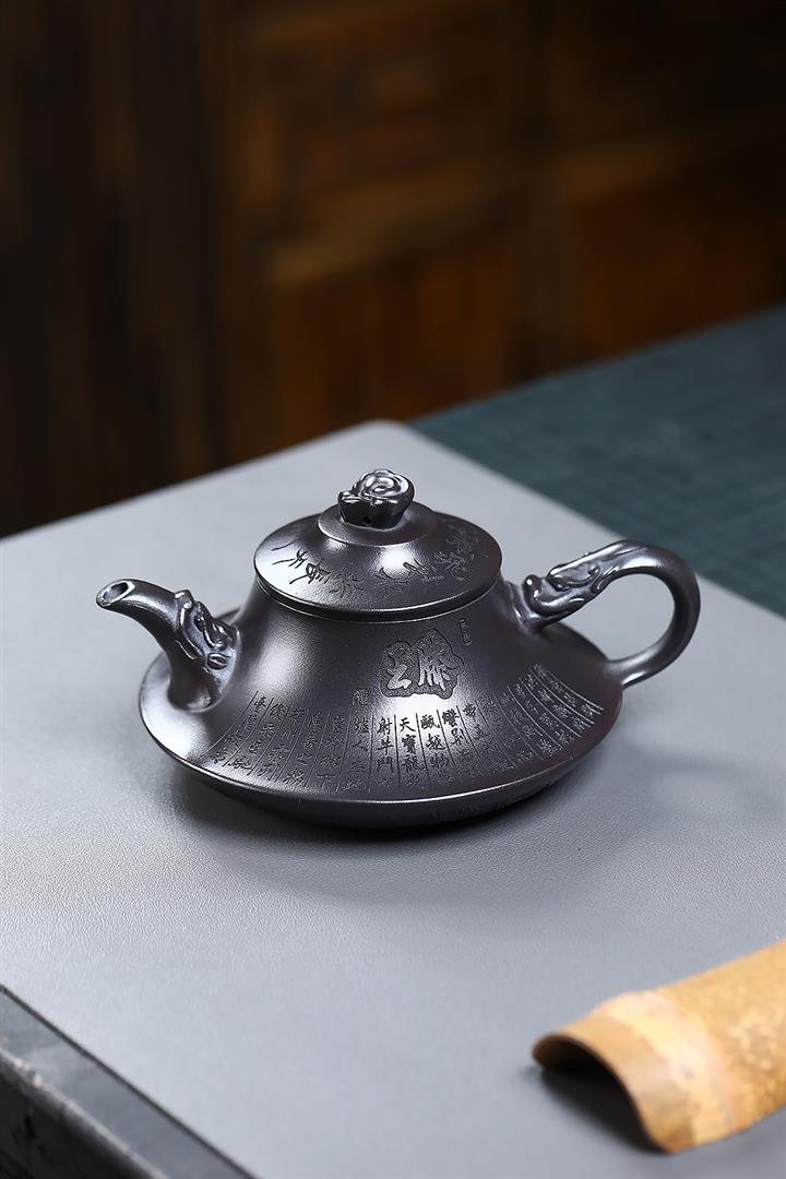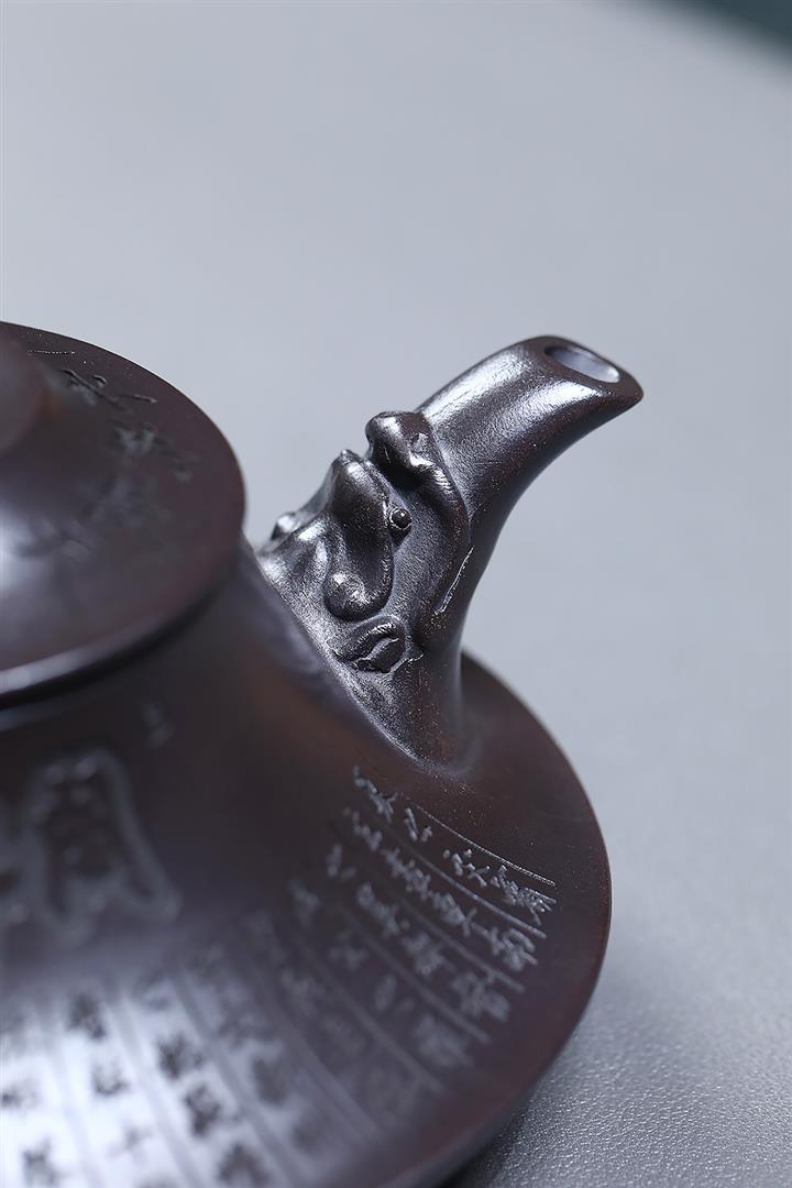 原礦老紫泥手工刻字招財進寶漢瓦茶壺POT6787