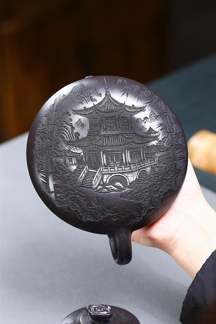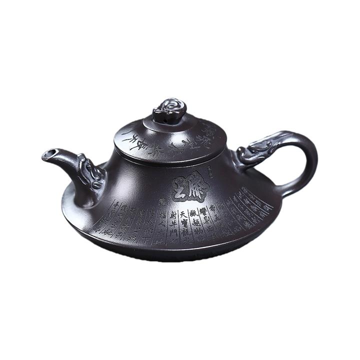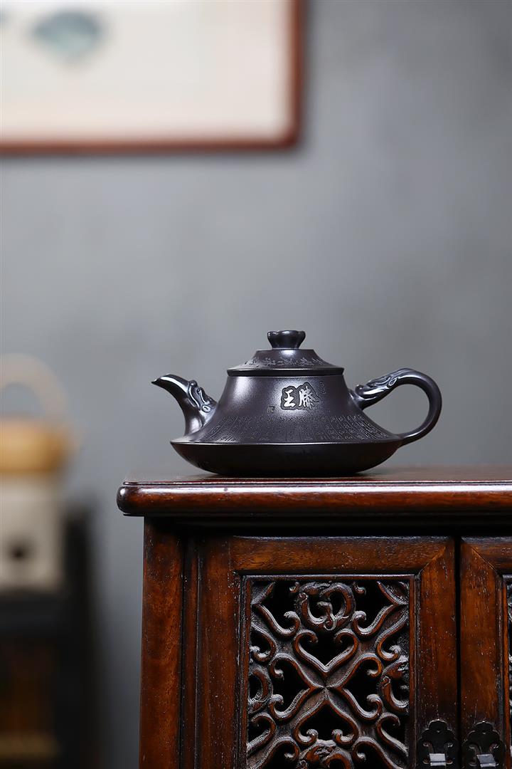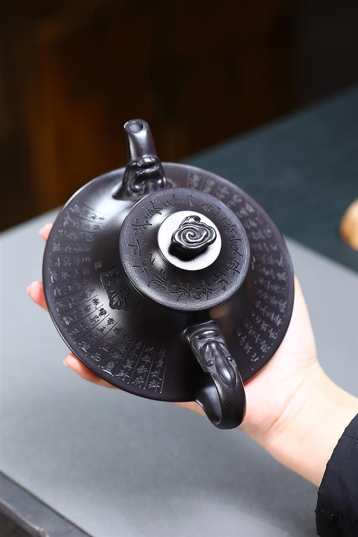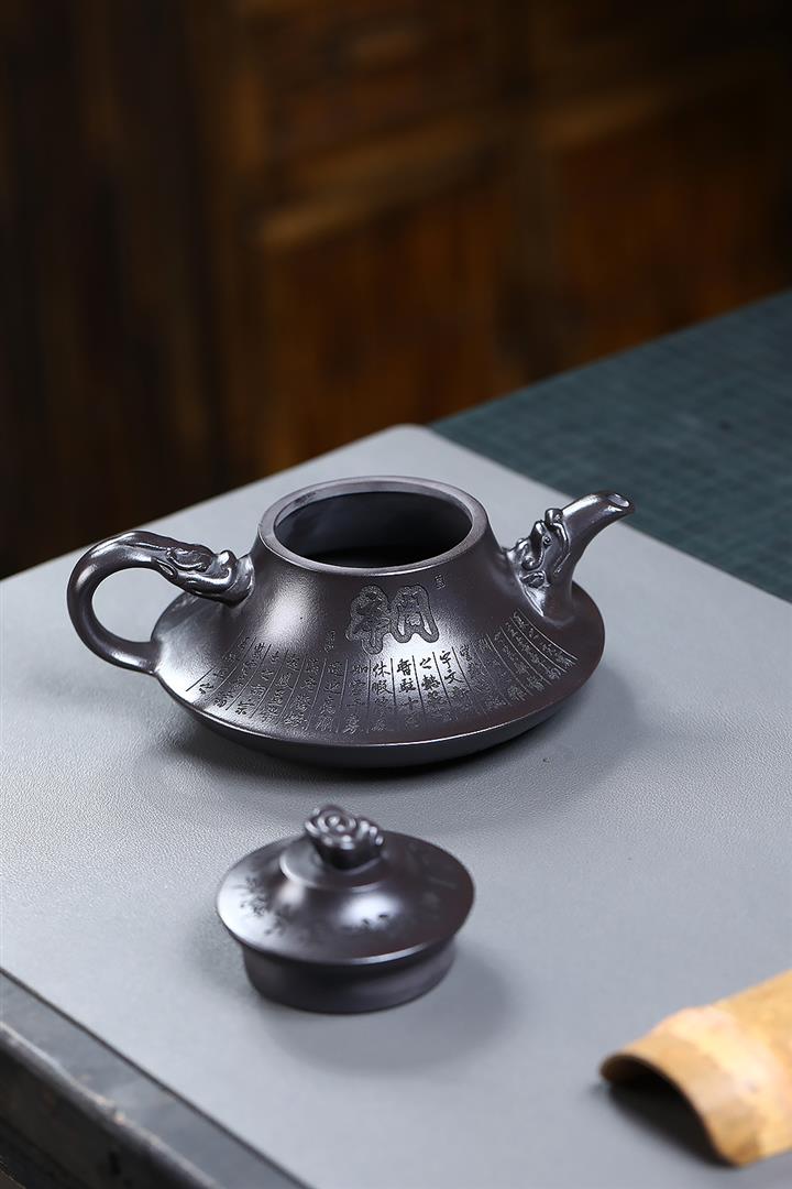 原礦老紫泥手工刻字招財進寶漢瓦茶壺POT6787