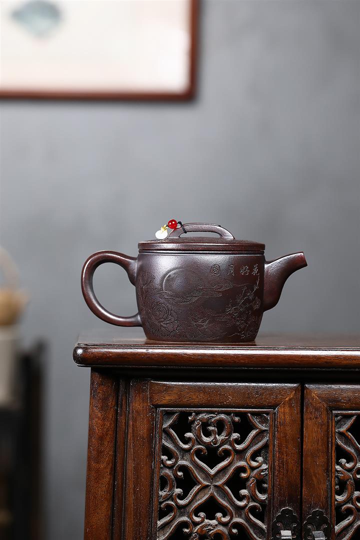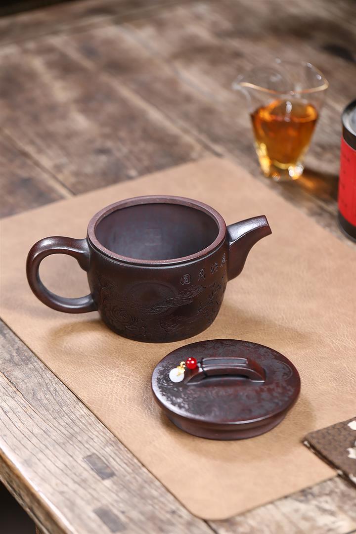 550cc原礦鐵血紅砂花好月圓漢瓦泡茶壺POT9496