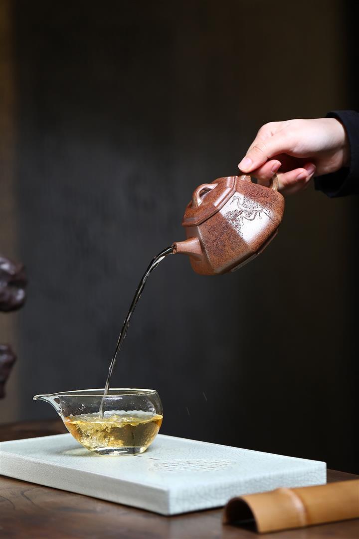 【泥料特點】砂土氣重,似淳實農民,日久使用,漸露鋒芒,養成變化,溫潤莊重。紫砂是壹種雙重氣孔結構的多孔性材質,氣孔微細,密度高。用紫砂壺沏茶,不失原味,且香不渙散,得茶之真香真味。紫砂使用越久,壺身色澤越發光亮照人,氣韻溫雅。紫砂壺長久使用器身會因撫摸擦拭,變得越發溫潤光澤。