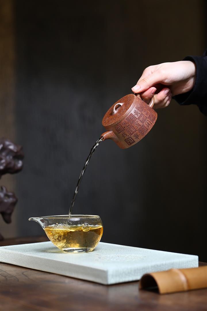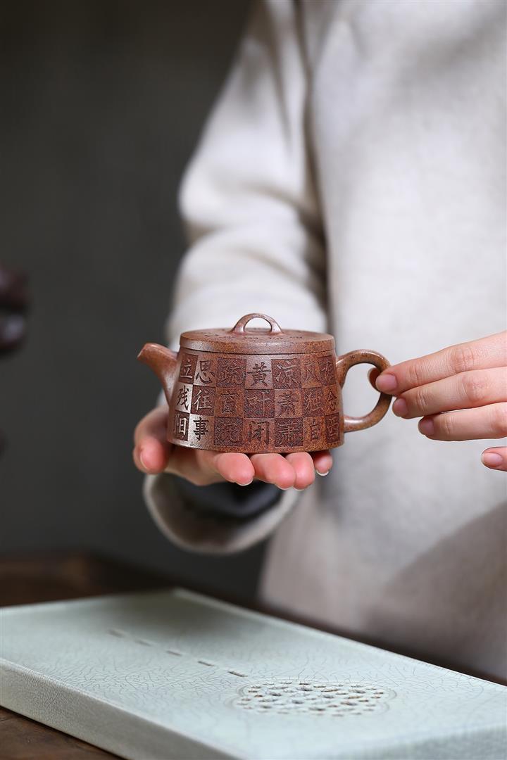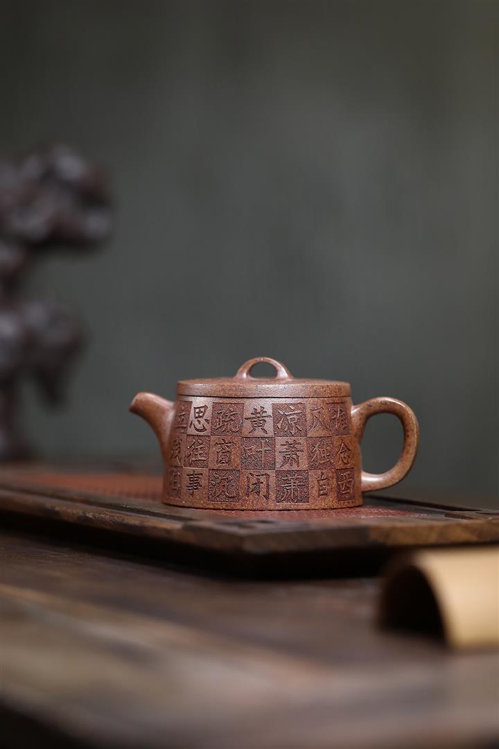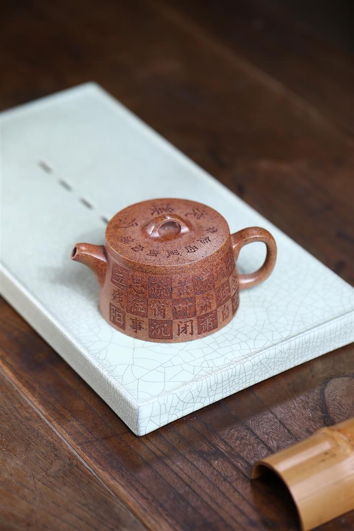 原礦龍血砂手工刻繪無欲則剛紫砂壺POT6530