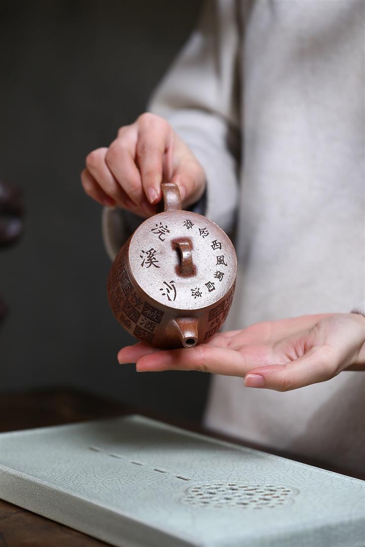 150cc原礦沈香泥柴燒刻字漢瓦泡茶壺POT9502