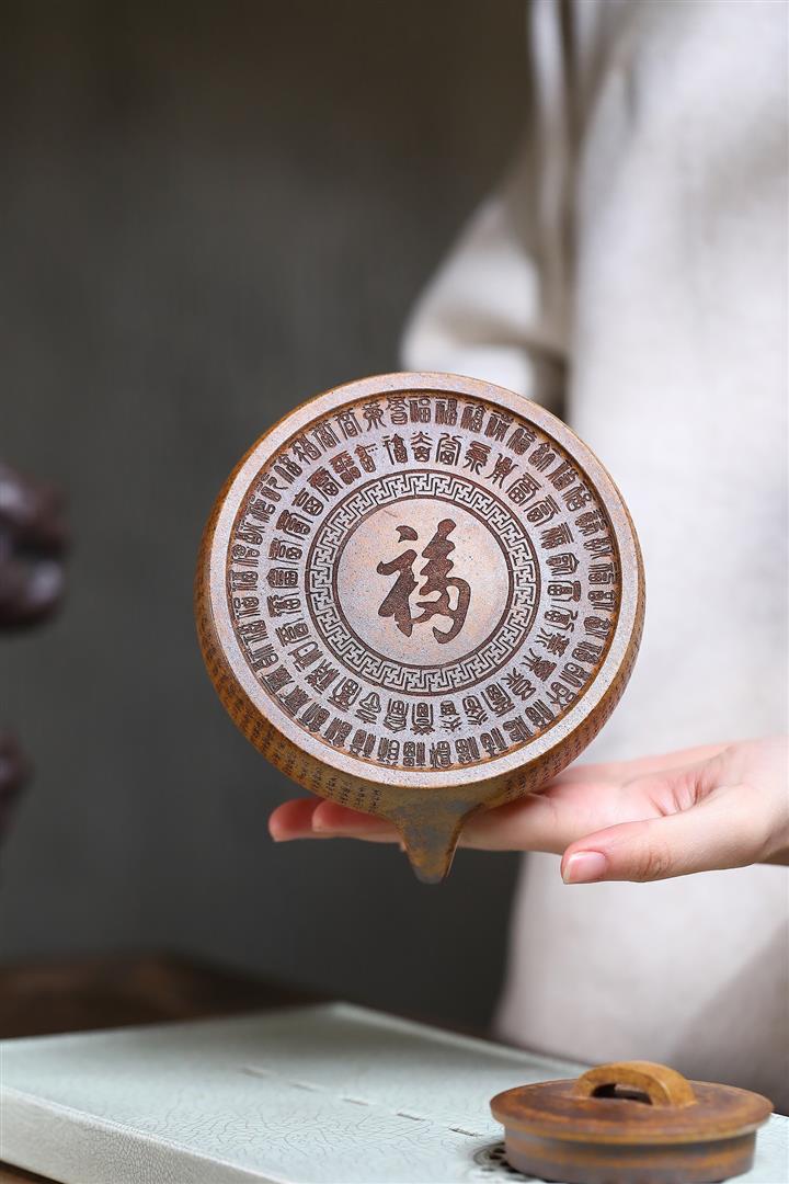 申·原礦高溫段泥本色堆繪漢瓦紫砂壺POT6370