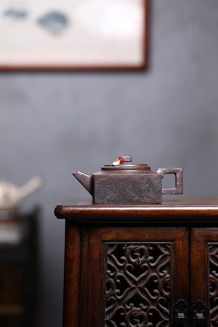 【作品介紹】此款壺形線條流暢,壺把,壺嘴,壺身壹氣呵成栩栩如生,是收藏把玩的好壺,泥料色澤古樸典雅,日久使用,漸露鋒芒,養成變化快,溫潤莊重,用其泡茶,使用的年代久,壺身就溫潤,泡出來的茶湯也就醇郁芳馨。