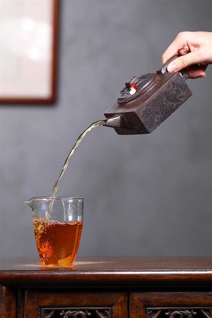 【泥料特點】砂土氣重,似淳實農民,日久使用,漸露鋒芒,養成變化,溫潤莊重。紫砂是壹種雙重氣孔結構的多孔性材質,氣孔微細,密度高。用紫砂壺沏茶,不失原味,且香不渙散,得茶之真香真味。紫砂使用越久,壺身色澤越發光亮照人,氣韻溫雅。紫砂壺長久使用器身會因撫摸擦拭,變得越發溫潤光澤。
