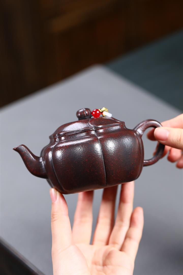 230cc原礦鐵血紅砂錦葵仿古泡茶壺POT9530