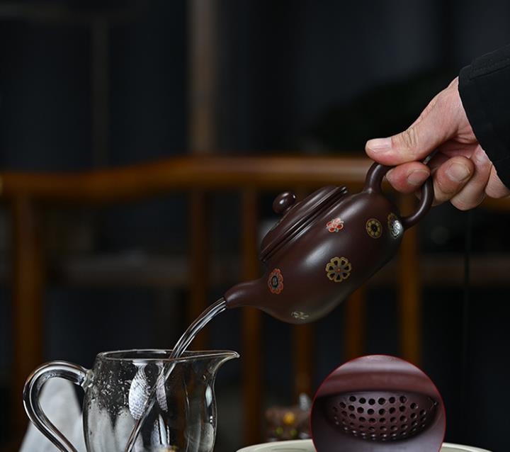【泥料特點】砂土氣重,似淳實農民,日久使用,漸露鋒芒,養成變化,溫潤莊重。紫砂是壹種雙重氣孔結構的多孔性材質,氣孔微細,密度高。用紫砂壺沏茶,不失原味,且香不渙散,得茶之真香真味。紫砂使用越久,壺身色澤越發光亮照人,氣韻溫雅。紫砂壺長久使用器身會因撫摸擦拭,變得越發溫潤光澤。