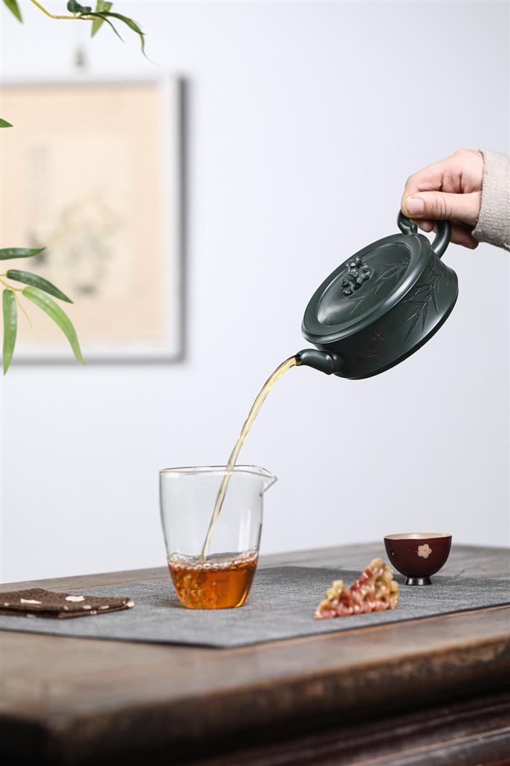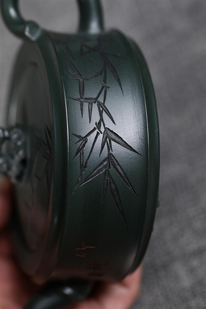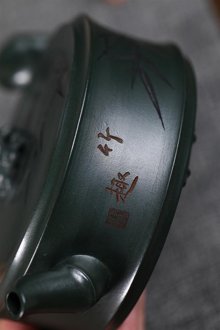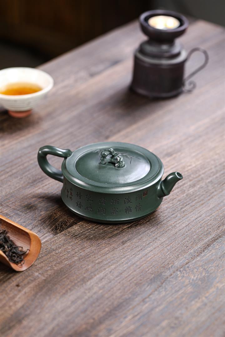 280cc原礦綠泥太湖石竹趣泡茶壺POT9556
