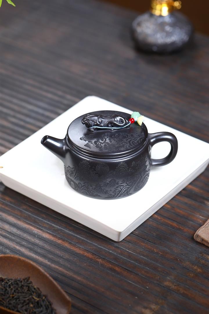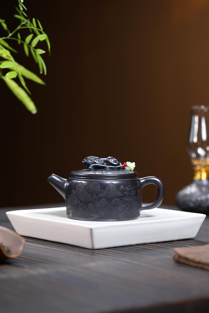 【作品介紹】此款壺形線條流暢,壺把,壺嘴,壺身壹氣呵成栩栩如生,是收藏把玩的好壺,泥料色澤古樸典雅,日久使用,漸露鋒芒,養成變化快,溫潤莊重,用其泡茶,使用的年代久,壺身就溫潤,泡出來的茶湯也就醇郁芳馨。