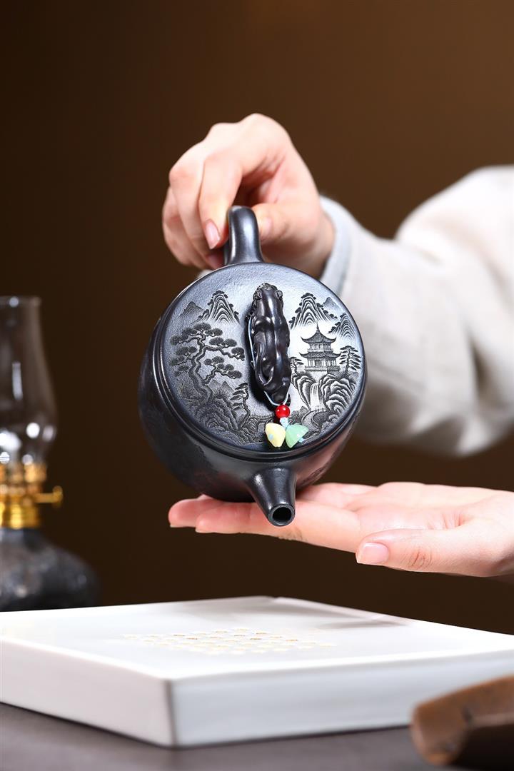 320cc原礦青灰段寒江獨釣茶壺POT9234