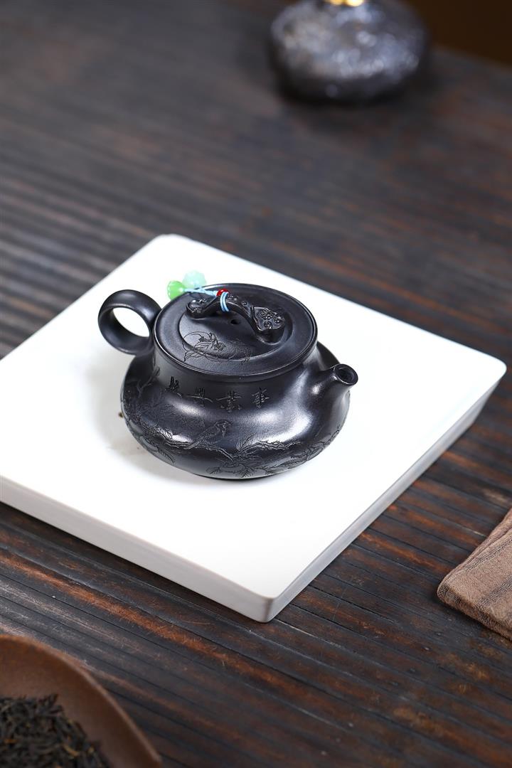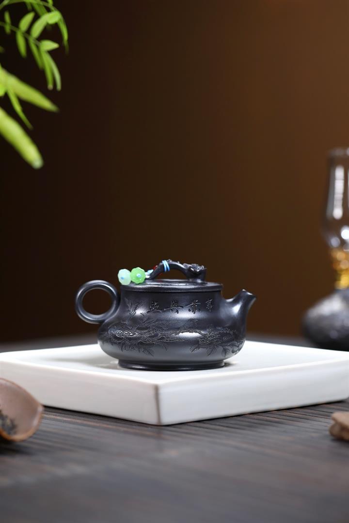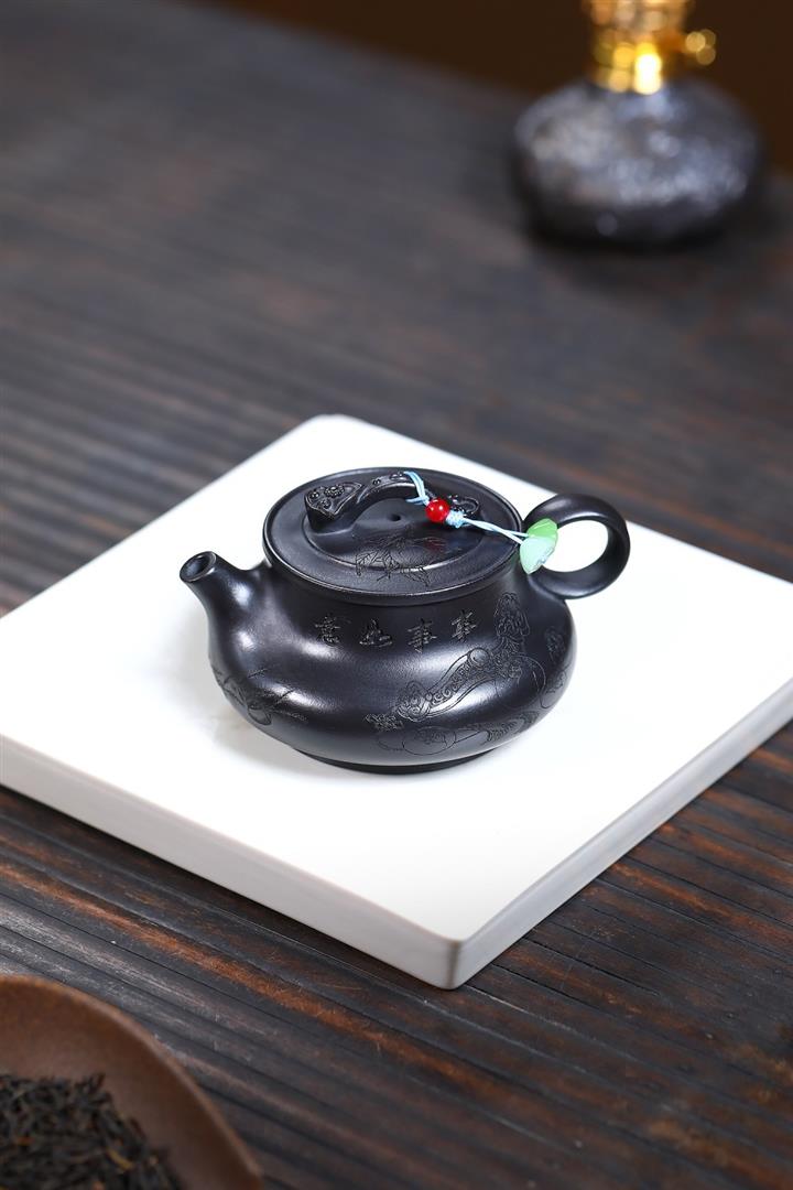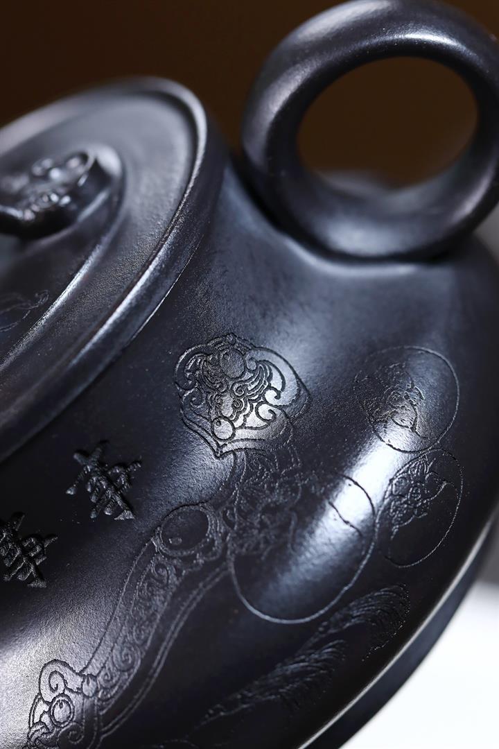 原礦紅皮龍滿刻山水漢瓦茶壺POT7226