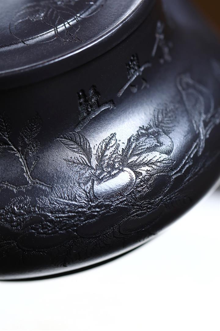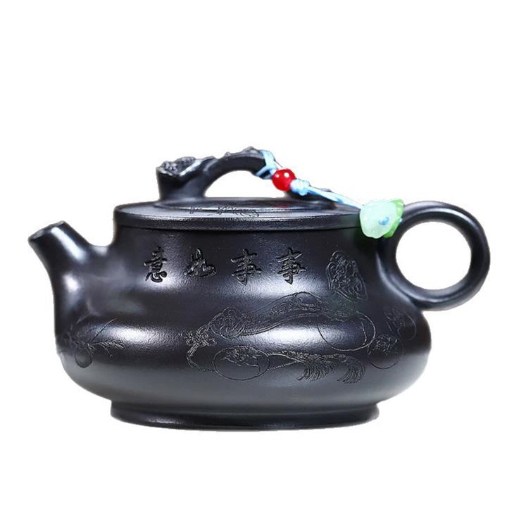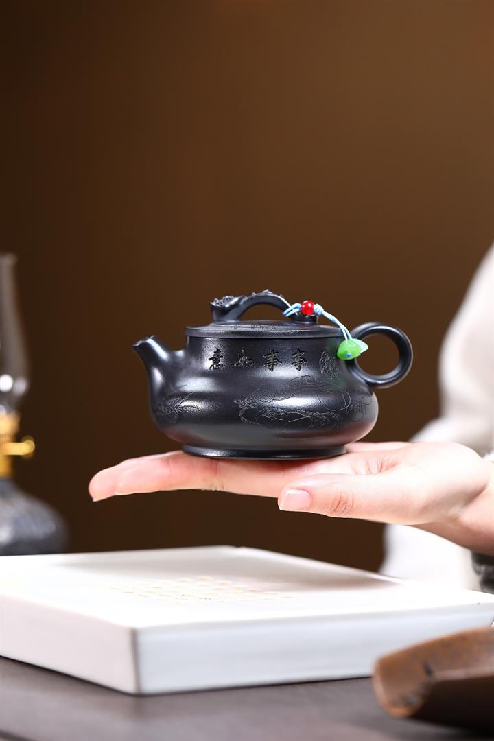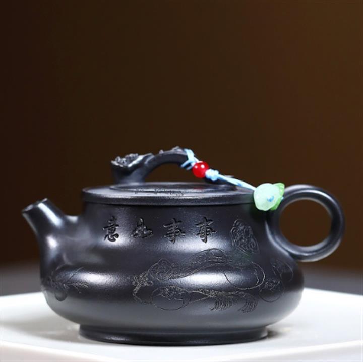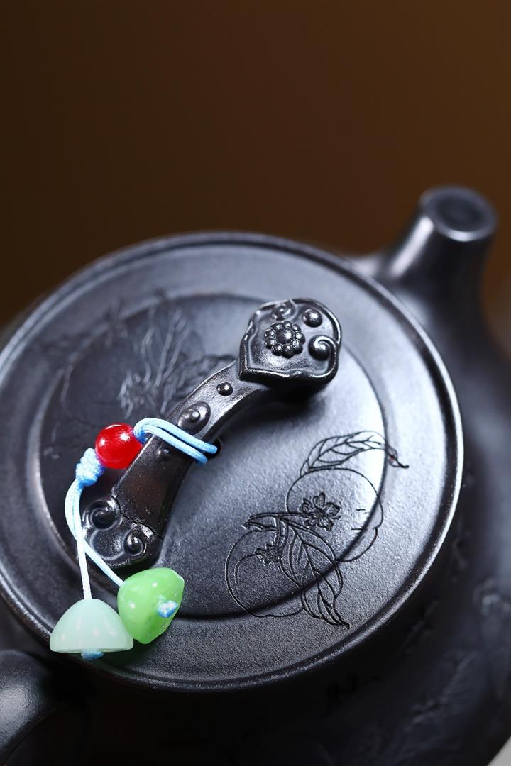 原礦紅皮龍滿刻山水漢瓦茶壺POT7226