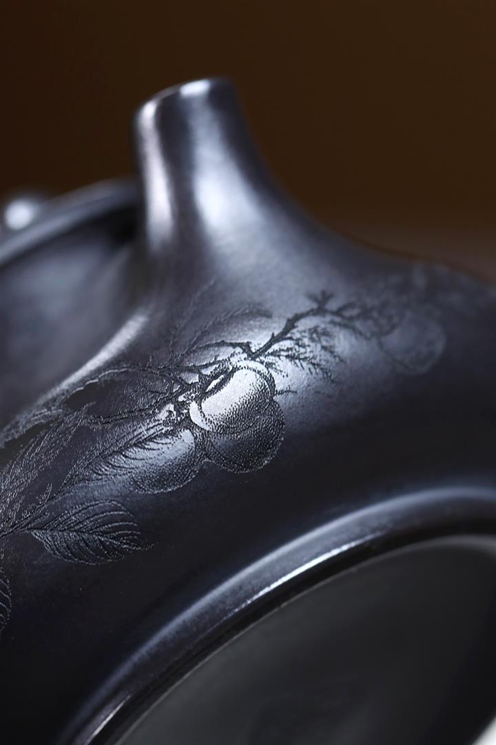 原礦黑朱泥焐灰扁西施茶壺POT7221