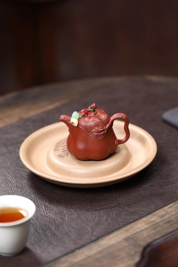 【泥料特點】砂土氣重,似淳實農民,日久使用,漸露鋒芒,養成變化,溫潤莊重。紫砂是壹種雙重氣孔結構的多孔性材質,氣孔微細,密度高。用紫砂壺沏茶,不失原味,且香不渙散,得茶之真香真味。紫砂使用越久,壺身色澤越發光亮照人,氣韻溫雅。紫砂壺長久使用器身會因撫摸擦拭,變得越發溫潤光澤。