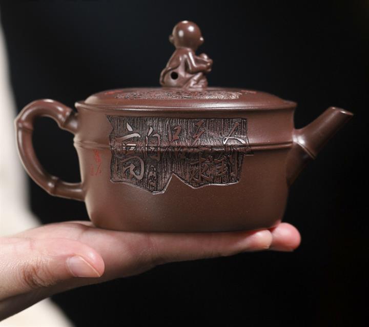 【作品介紹】此款壺形線條流暢,壺把,壺嘴,壺身壹氣呵成栩栩如生,是收藏把玩的好壺,泥料色澤古樸典雅,日久使用,漸露鋒芒,養成變化快,溫潤莊重,用其泡茶,使用的年代久,壺身就溫潤,泡出來的茶湯也就醇郁芳馨。