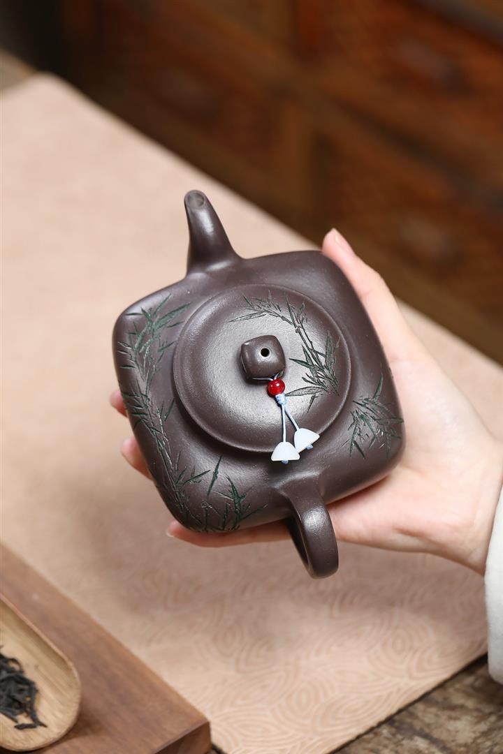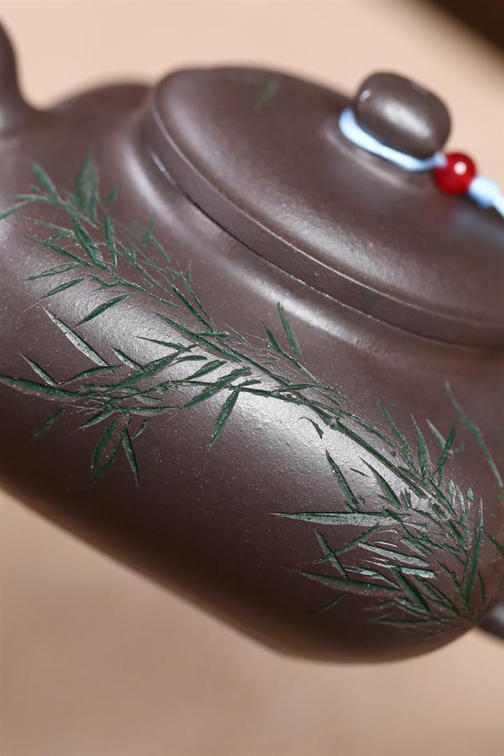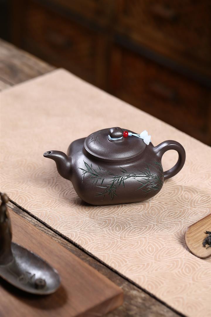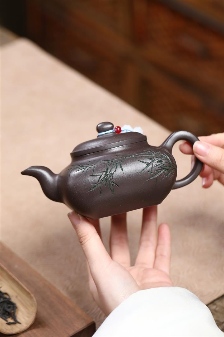 380cc原礦紫玉金砂紫玉竹影明爐泡茶壺POT9626