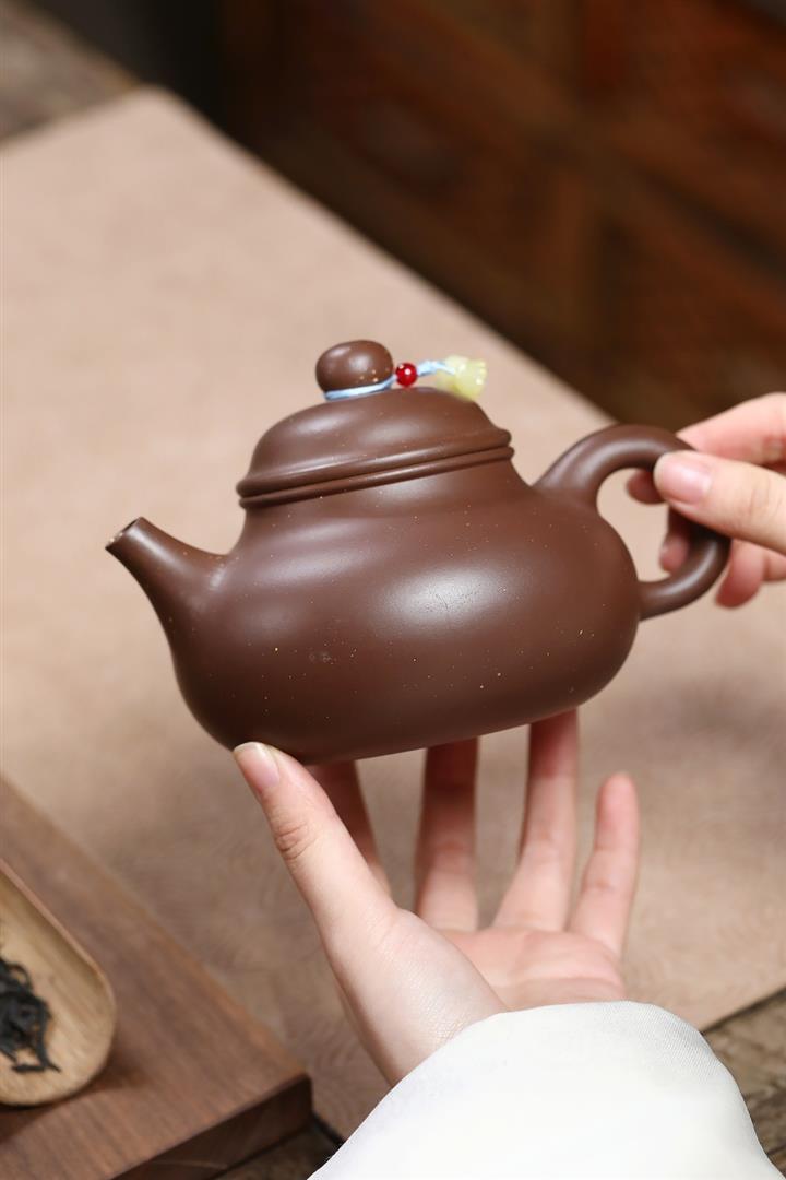 【作品介紹】此款壺形線條流暢,壺把,壺嘴,壺身壹氣呵成栩栩如生,是收藏把玩的好壺,泥料色澤古樸典雅,日久使用,漸露鋒芒,養成變化快,溫潤莊重,用其泡茶,使用的年代久,壺身就溫潤,泡出來的茶湯也就醇郁芳馨。