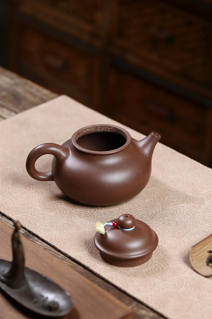 【泥料特點】砂土氣重,似淳實農民,日久使用,漸露鋒芒,養成變化,溫潤莊重。紫砂是壹種雙重氣孔結構的多孔性材質,氣孔微細,密度高。用紫砂壺沏茶,不失原味,且香不渙散,得茶之真香真味。紫砂使用越久,壺身色澤越發光亮照人,氣韻溫雅。紫砂壺長久使用器身會因撫摸擦拭,變得越發溫潤光澤。