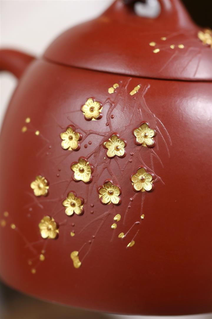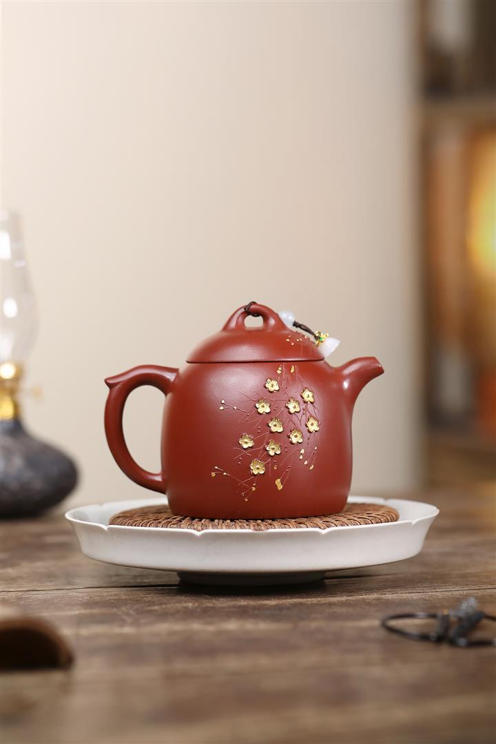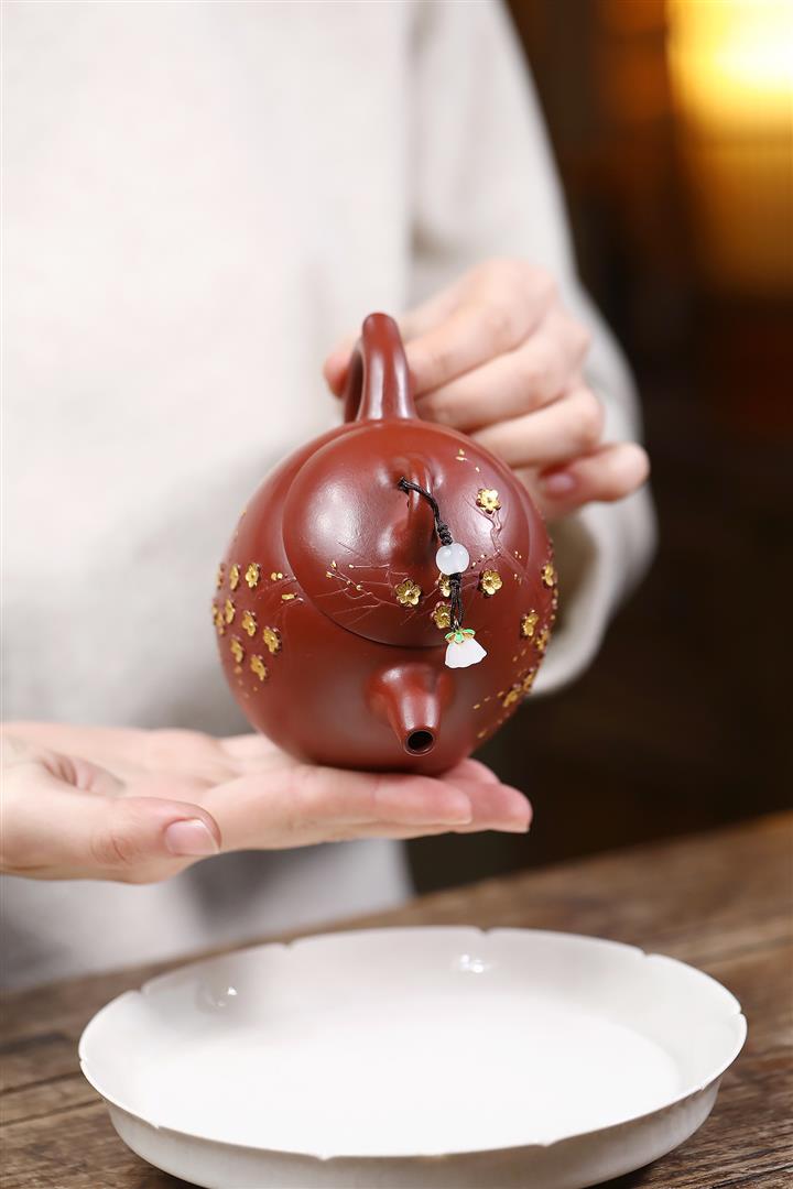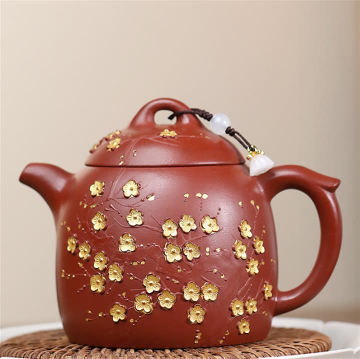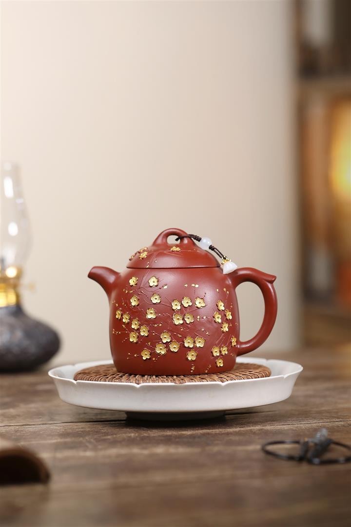 280cc原礦大紅袍堆繪金梅秦權泡茶壺POT9695