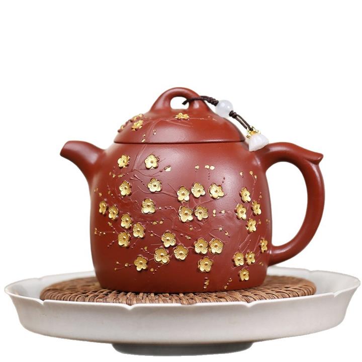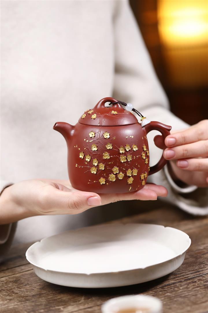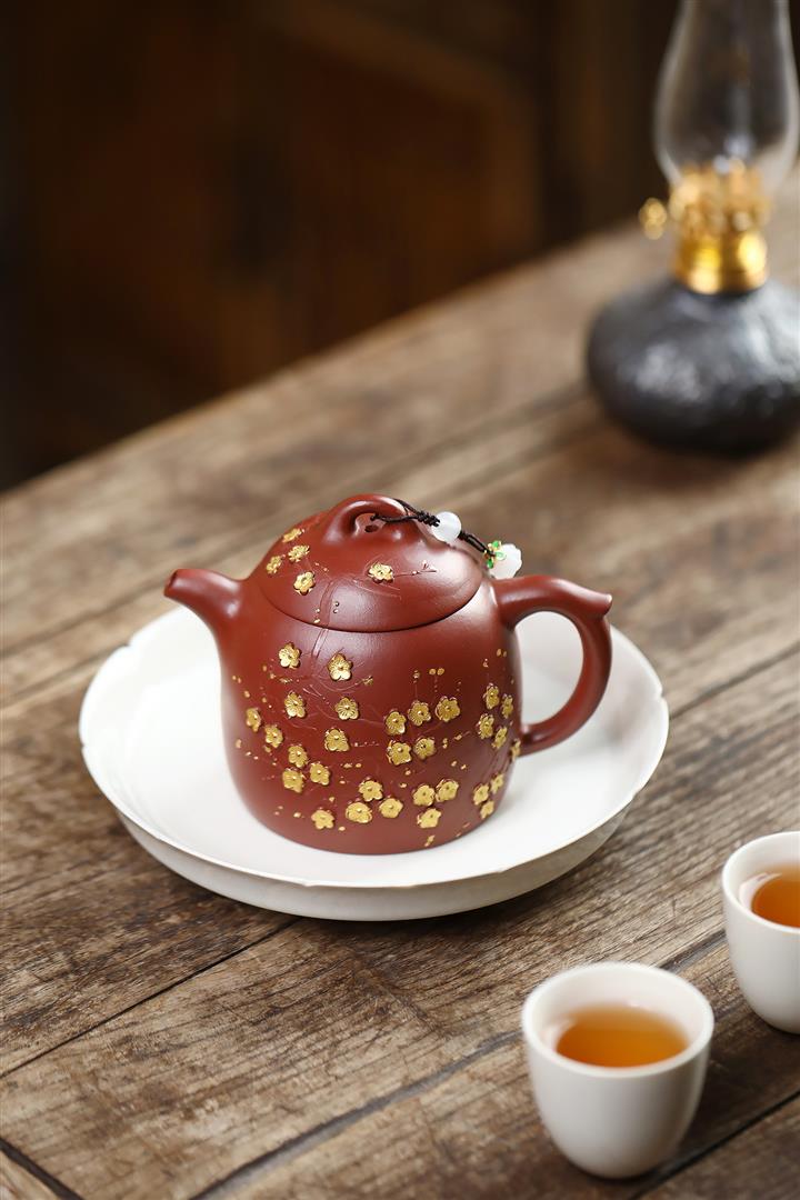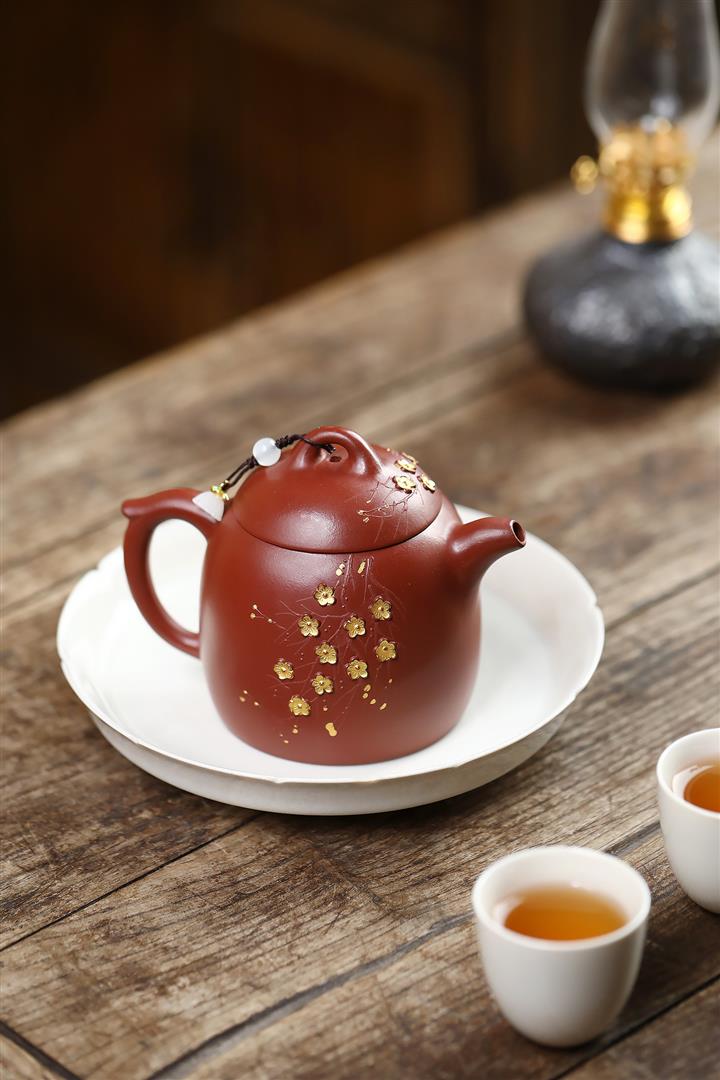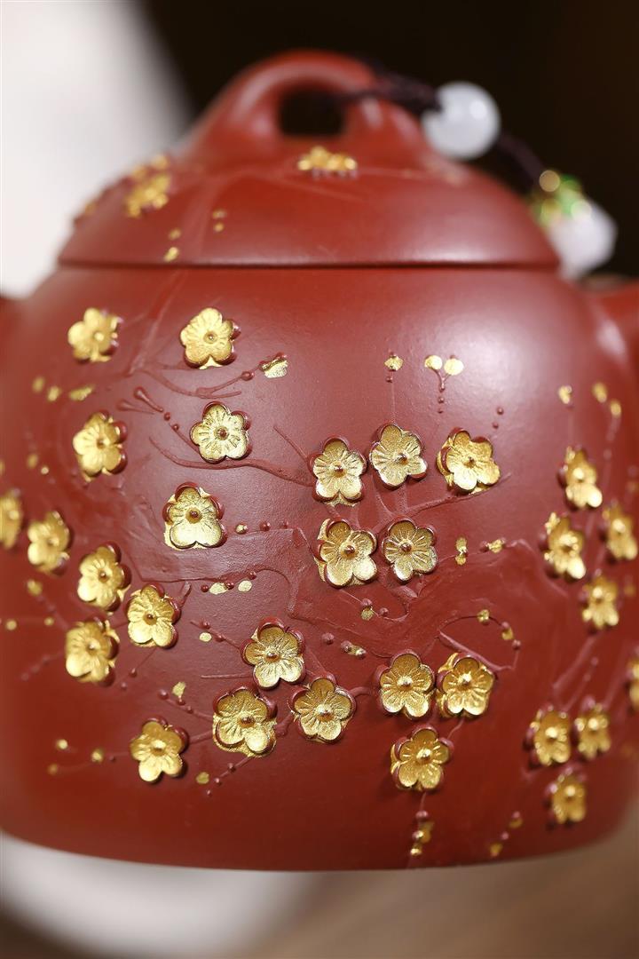 280cc原礦大紅袍堆繪金梅秦權泡茶壺POT9695