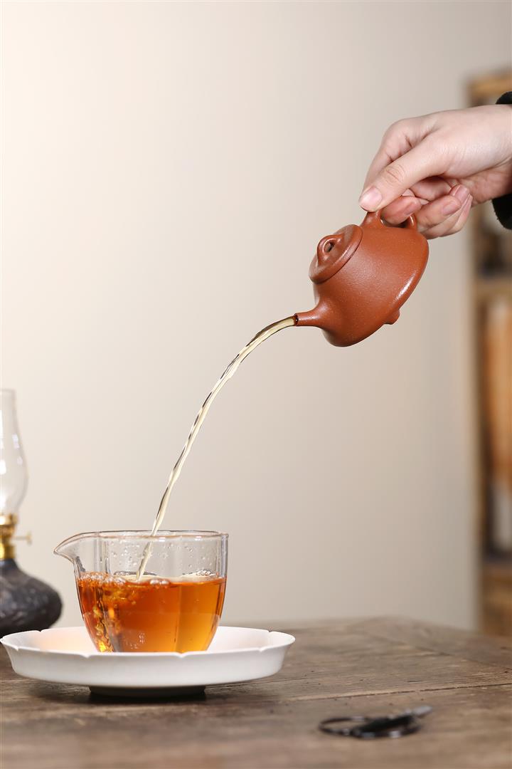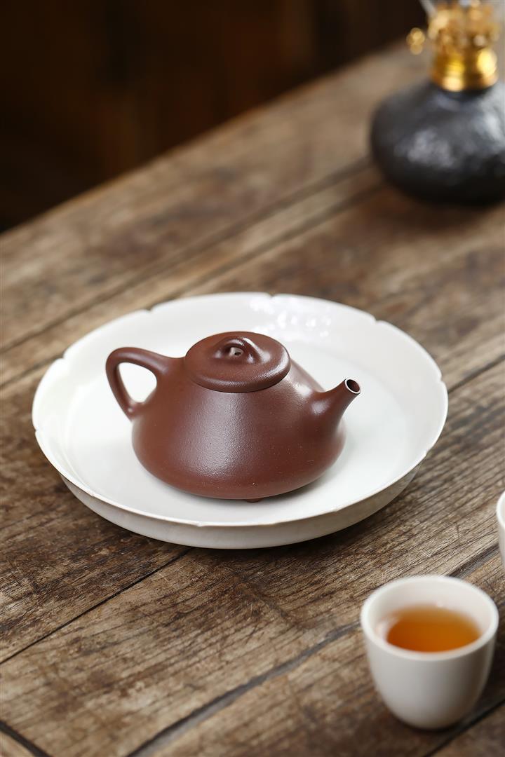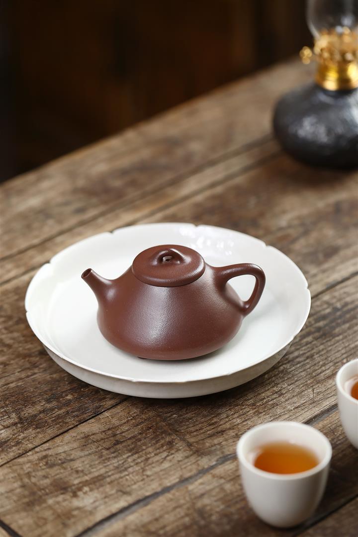 【泥料特點】砂土氣重,似淳實農民,日久使用,漸露鋒芒,養成變化,溫潤莊重。紫砂是壹種雙重氣孔結構的多孔性材質,氣孔微細,密度高。用紫砂壺沏茶,不失原味,且香不渙散,得茶之真香真味。紫砂使用越久,壺身色澤越發光亮照人,氣韻溫雅。紫砂壺長久使用器身會因撫摸擦拭,變得越發溫潤光澤。