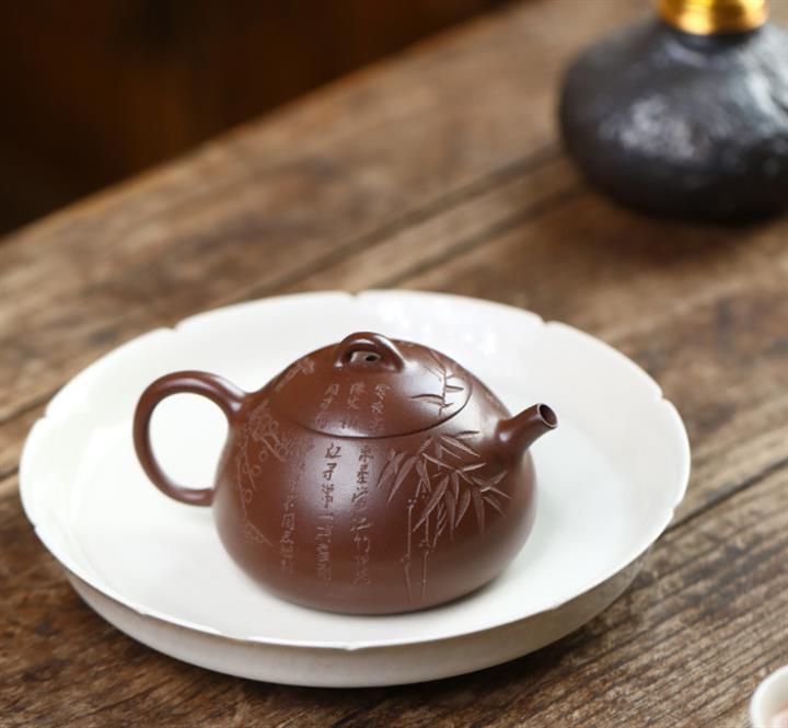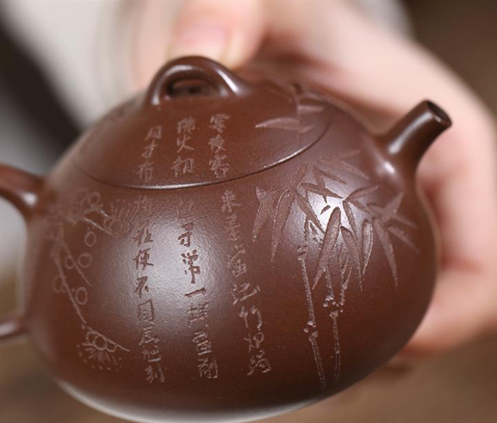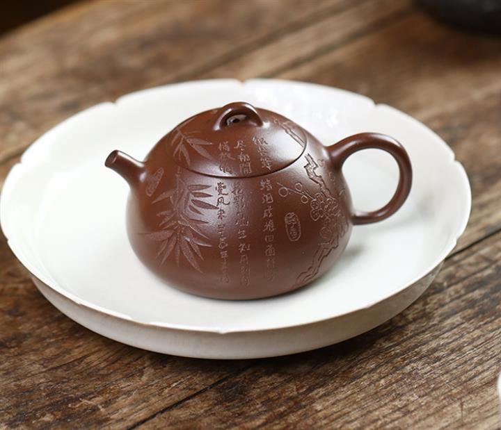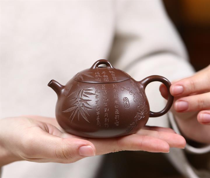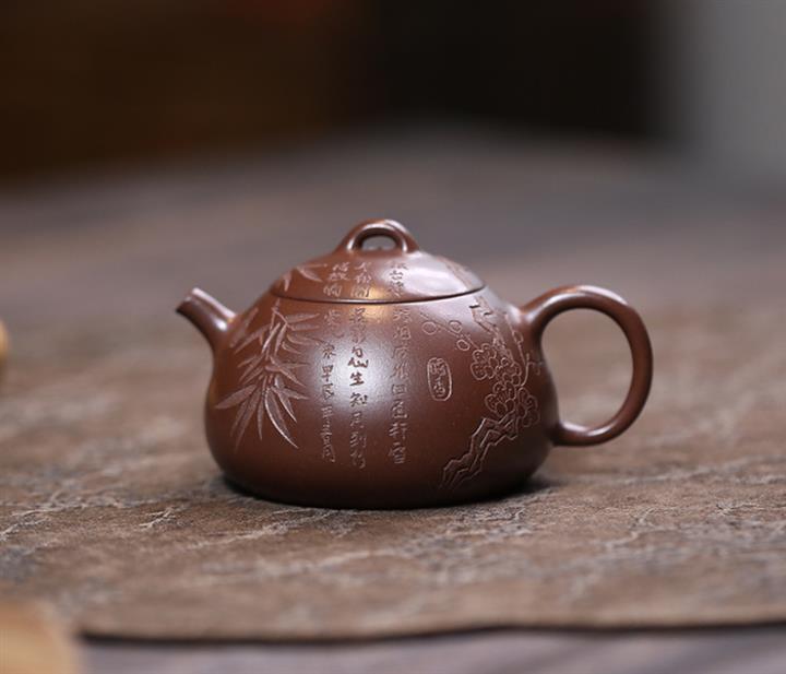 135cc原礦某革紫泥冬心秦權梅竹文旦泡茶壺POT9728