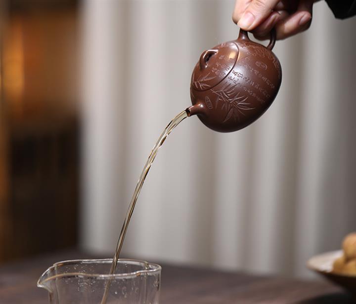 【泥料特點】砂土氣重,似淳實農民,日久使用,漸露鋒芒,養成變化,溫潤莊重。紫砂是壹種雙重氣孔結構的多孔性材質,氣孔微細,密度高。用紫砂壺沏茶,不失原味,且香不渙散,得茶之真香真味。紫砂使用越久,壺身色澤越發光亮照人,氣韻溫雅。紫砂壺長久使用器身會因撫摸擦拭,變得越發溫潤光澤。