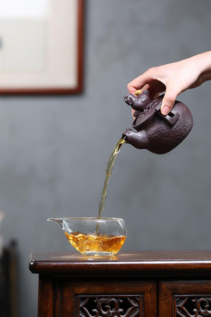 【泥料特點】砂土氣重,似淳實農民,日久使用,漸露鋒芒,養成變化,溫潤莊重。紫砂是壹種雙重氣孔結構的多孔性材質,氣孔微細,密度高。用紫砂壺沏茶,不失原味,且香不渙散,得茶之真香真味。紫砂使用越久,壺身色澤越發光亮照人,氣韻溫雅。紫砂壺長久使用器身會因撫摸擦拭,變得越發溫潤光澤。