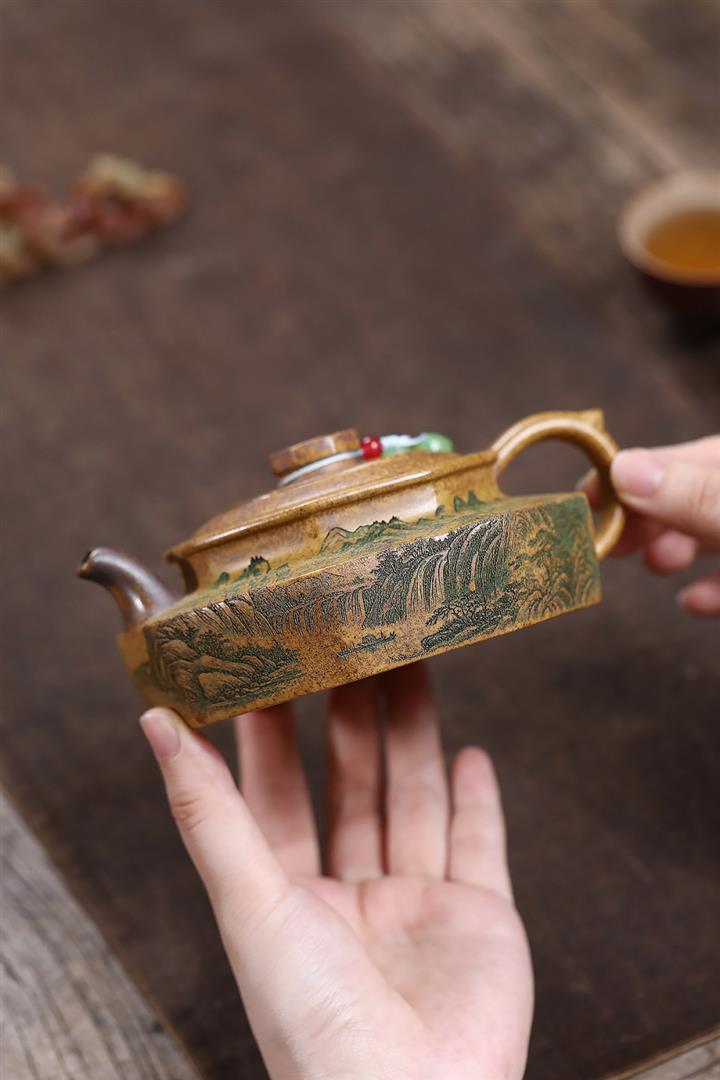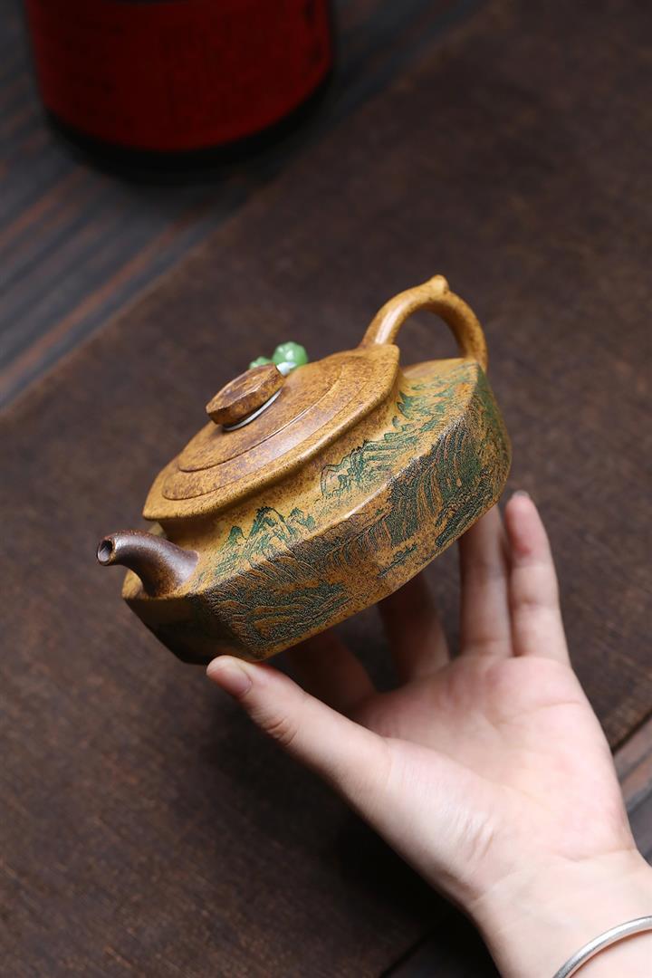【作品介紹】此款壺形線條流暢,壺把,壺嘴,壺身壹氣呵成栩栩如生,是收藏把玩的好壺,泥料色澤古樸典雅,日久使用,漸露鋒芒,養成變化快,溫潤莊重,用其泡茶,使用的年代久,壺身就溫潤,泡出來的茶湯也就醇郁芳馨。