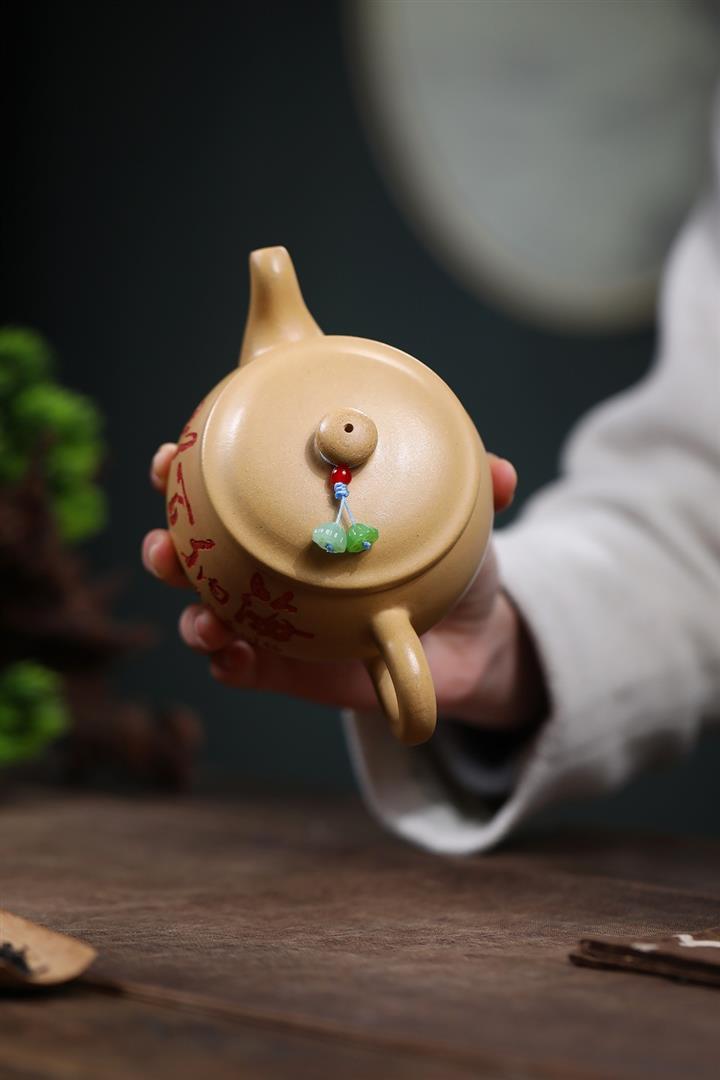 【作品介紹】此款壺形線條流暢,壺把,壺嘴,壺身壹氣呵成栩栩如生,是收藏把玩的好壺,泥料色澤古樸典雅,日久使用,漸露鋒芒,養成變化快,溫潤莊重,用其泡茶,使用的年代久,壺身就溫潤,泡出來的茶湯也就醇郁芳馨。