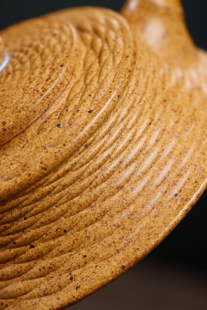 【泥料特點】砂土氣重,似淳實農民,日久使用,漸露鋒芒,養成變化,溫潤莊重。紫砂是壹種雙重氣孔結構的多孔性材質,氣孔微細,密度高。用紫砂壺沏茶,不失原味,且香不渙散,得茶之真香真味。紫砂使用越久,壺身色澤越發光亮照人,氣韻溫雅。紫砂壺長久使用器身會因撫摸擦拭,變得越發溫潤光澤。