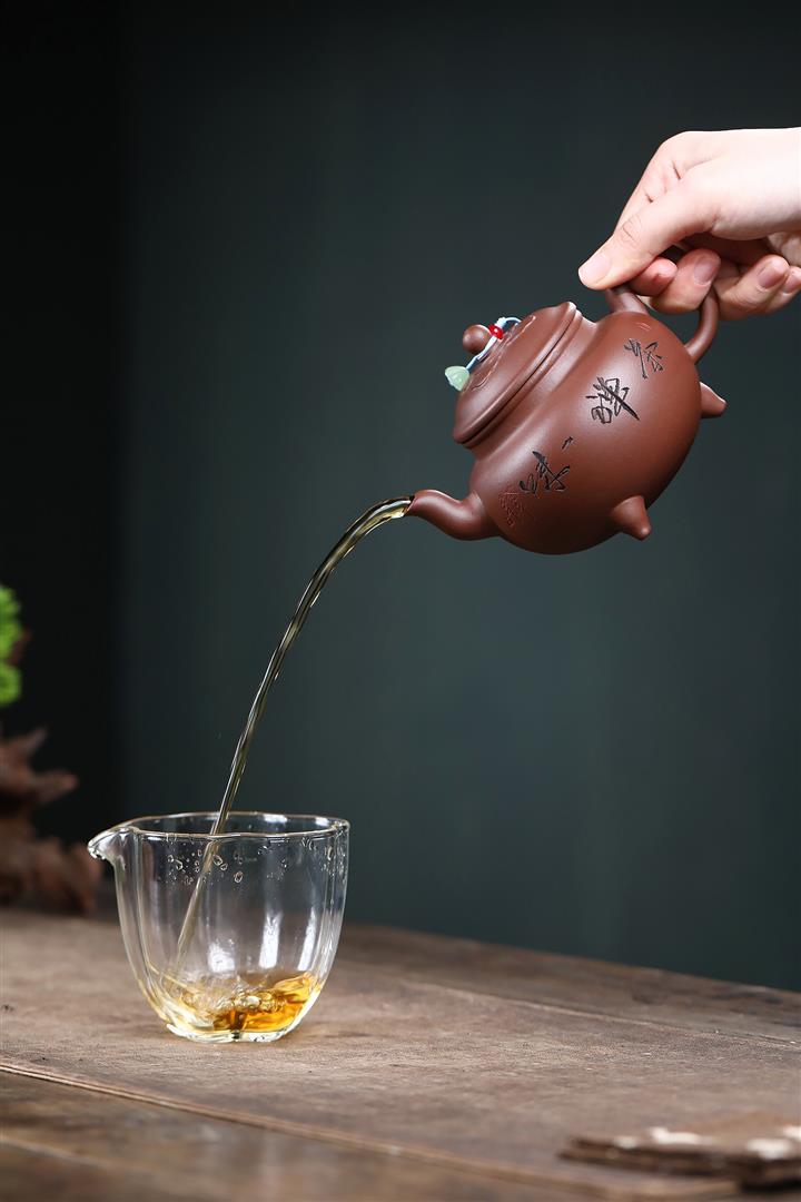 【泥料特點】砂土氣重,似淳實農民,日久使用,漸露鋒芒,養成變化,溫潤莊重。紫砂是壹種雙重氣孔結構的多孔性材質,氣孔微細,密度高。用紫砂壺沏茶,不失原味,且香不渙散,得茶之真香真味。紫砂使用越久,壺身色澤越發光亮照人,氣韻溫雅。紫砂壺長久使用器身會因撫摸擦拭,變得越發溫潤光澤。