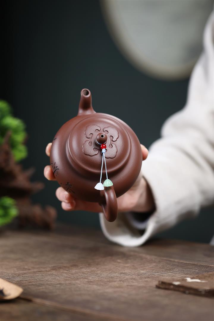 【作品介紹】此款壺形線條流暢,壺把,壺嘴,壺身壹氣呵成栩栩如生,是收藏把玩的好壺,泥料色澤古樸典雅,日久使用,漸露鋒芒,養成變化快,溫潤莊重,用其泡茶,使用的年代久,壺身就溫潤,泡出來的茶湯也就醇郁芳馨。