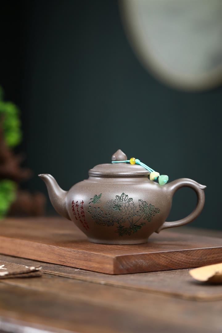 【作品介紹】此款壺形線條流暢,壺把,壺嘴,壺身壹氣呵成栩栩如生,是收藏把玩的好壺,泥料色澤古樸典雅,日久使用,漸露鋒芒,養成變化快,溫潤莊重,用其泡茶,使用的年代久,壺身就溫潤,泡出來的茶湯也就醇郁芳馨。