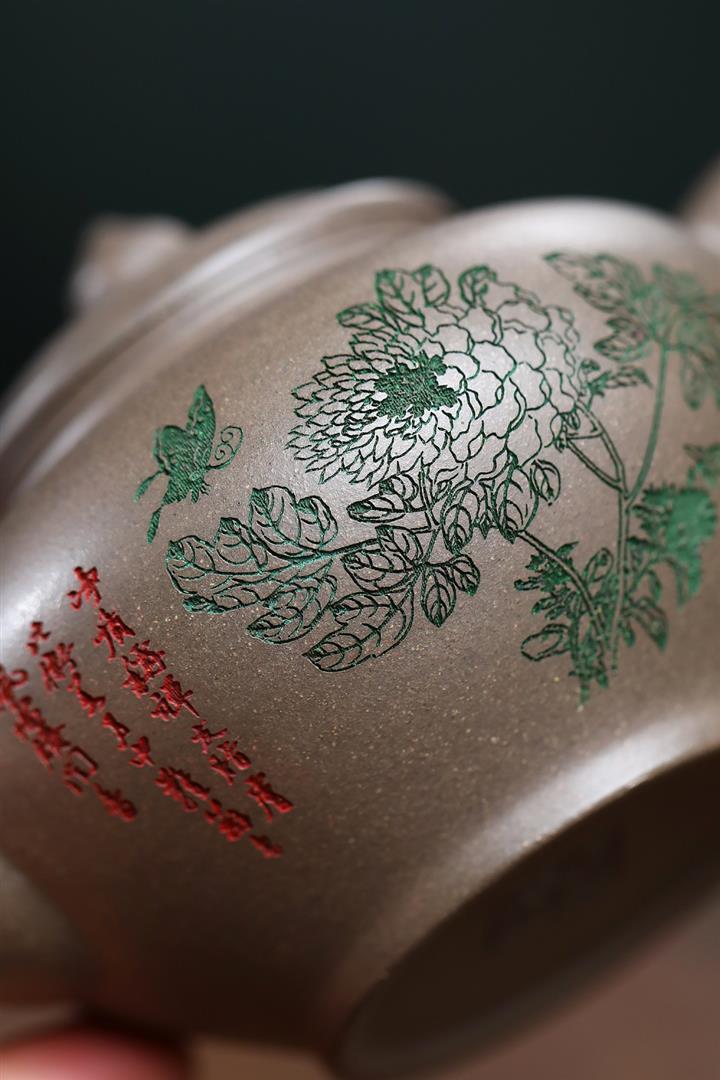 【泥料特點】砂土氣重,似淳實農民,日久使用,漸露鋒芒,養成變化,溫潤莊重。紫砂是壹種雙重氣孔結構的多孔性材質,氣孔微細,密度高。用紫砂壺沏茶,不失原味,且香不渙散,得茶之真香真味。紫砂使用越久,壺身色澤越發光亮照人,氣韻溫雅。紫砂壺長久使用器身會因撫摸擦拭,變得越發溫潤光澤。