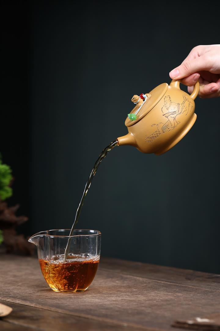 【作品介紹】此款壺形線條流暢,壺把,壺嘴,壺身壹氣呵成栩栩如生,是收藏把玩的好壺,泥料色澤古樸典雅,日久使用,漸露鋒芒,養成變化快,溫潤莊重,用其泡茶,使用的年代久,壺身就溫潤,泡出來的茶湯也就醇郁芳馨。