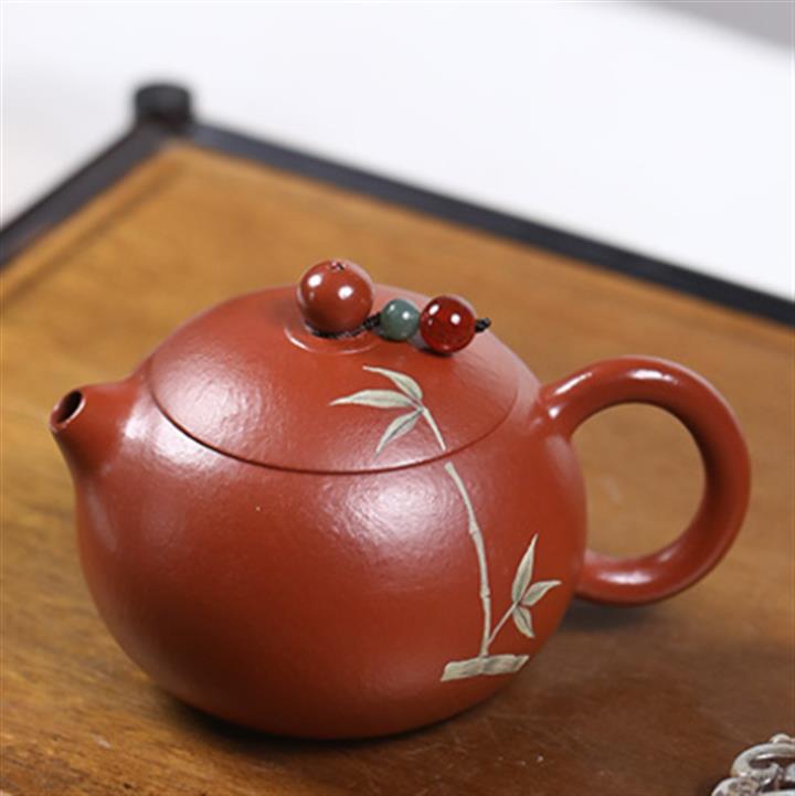 120cc原礦朱泥泥繪青竹西施泡茶壺POT9902