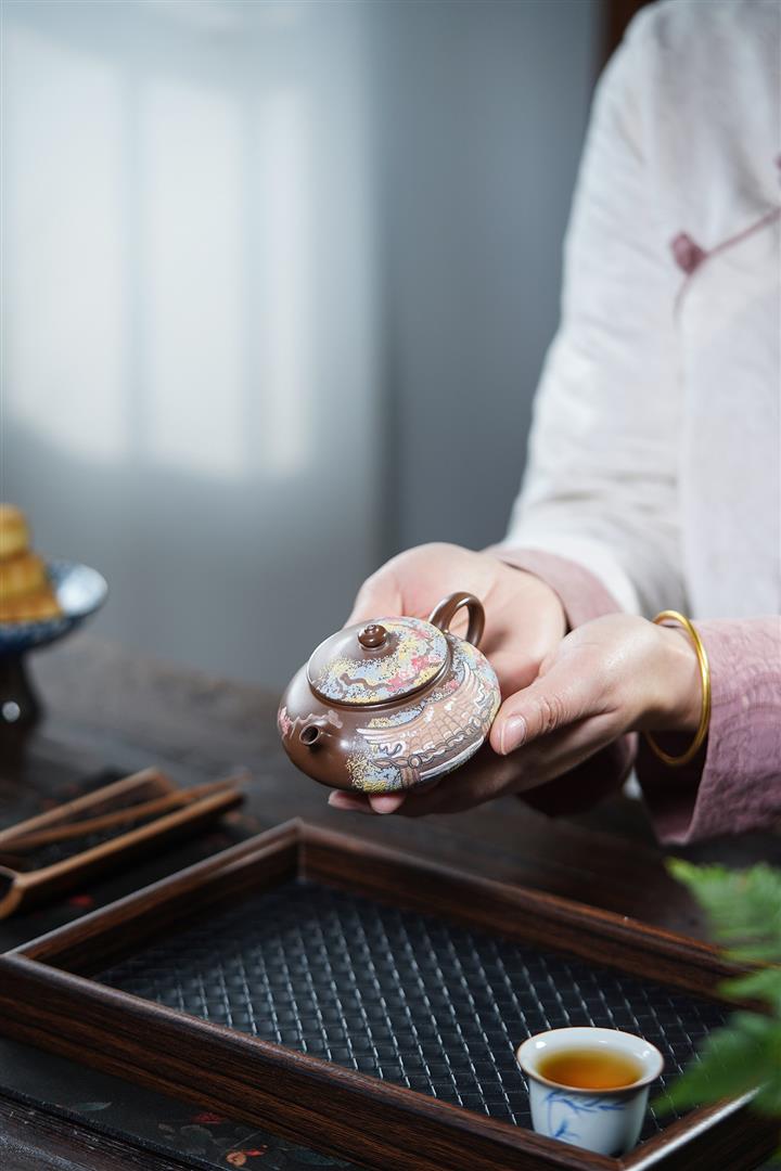 原礦段泥彩繪曲紫砂壺POT5855