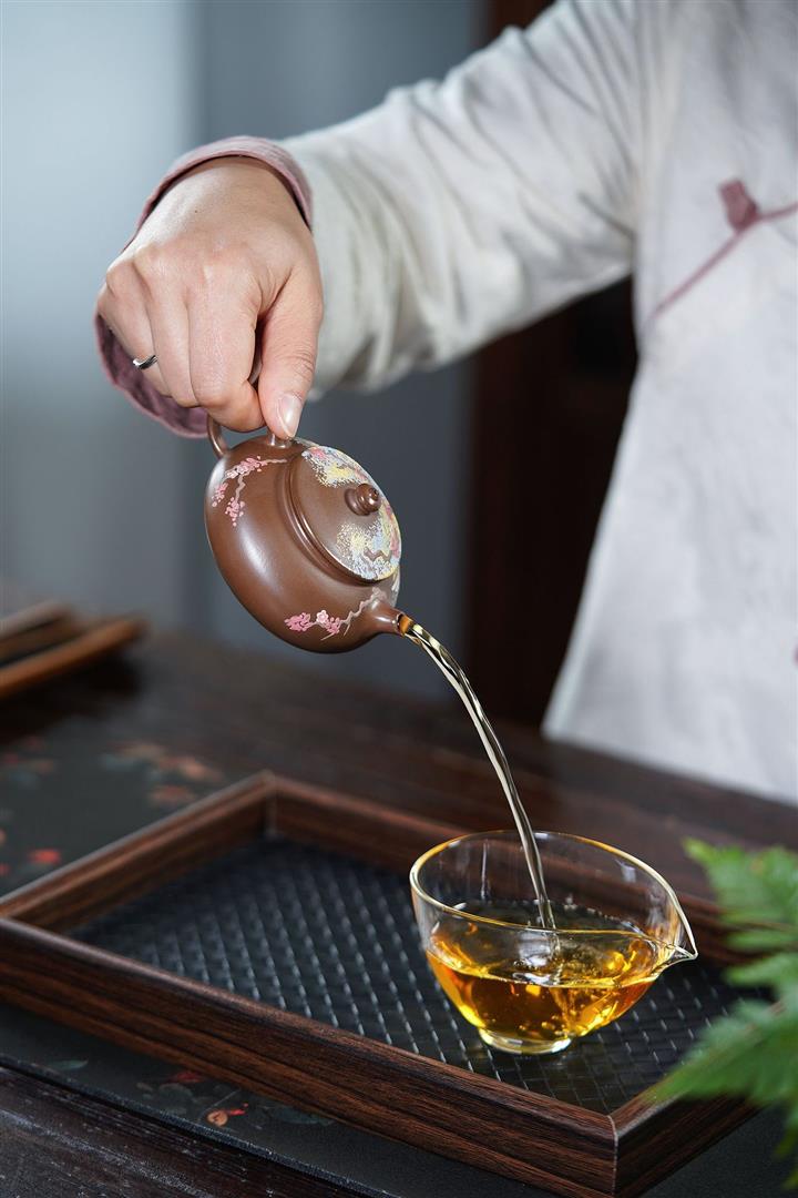 【泥料特點】砂土氣重,似淳實農民,日久使用,漸露鋒芒,養成變化,溫潤莊重。紫砂是壹種雙重氣孔結構的多孔性材質,氣孔微細,密度高。用紫砂壺沏茶,不失原味,且香不渙散,得茶之真香真味。紫砂使用越久,壺身色澤越發光亮照人,氣韻溫雅。紫砂壺長久使用器身會因撫摸擦拭,變得越發溫潤光澤。