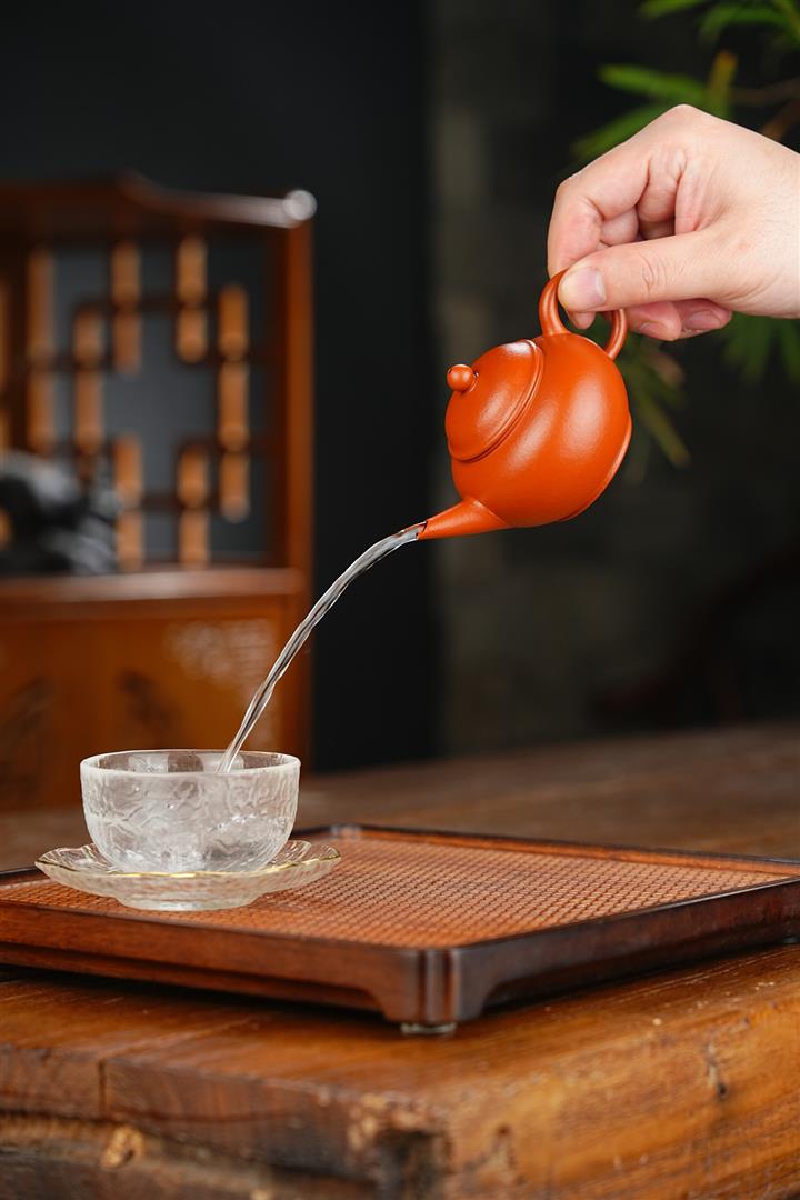 【泥料特點】砂土氣重,似淳實農民,日久使用,漸露鋒芒,養成變化,溫潤莊重。紫砂是壹種雙重氣孔結構的多孔性材質,氣孔微細,密度高。用紫砂壺沏茶,不失原味,且香不渙散,得茶之真香真味。紫砂使用越久,壺身色澤越發光亮照人,氣韻溫雅。紫砂壺長久使用器身會因撫摸擦拭,變得越發溫潤光澤。