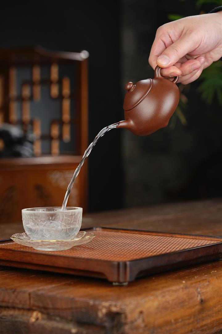 【泥料特點】砂土氣重,似淳實農民,日久使用,漸露鋒芒,養成變化,溫潤莊重。紫砂是壹種雙重氣孔結構的多孔性材質,氣孔微細,密度高。用紫砂壺沏茶,不失原味,且香不渙散,得茶之真香真味。紫砂使用越久,壺身色澤越發光亮照人,氣韻溫雅。紫砂壺長久使用器身會因撫摸擦拭,變得越發溫潤光澤。