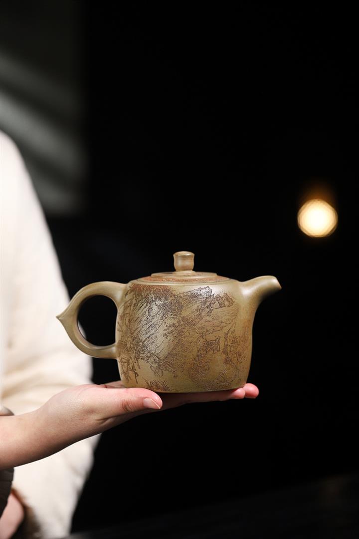【作品介紹】此款壺形線條流暢,壺把,壺嘴,壺身壹氣呵成栩栩如生,是收藏把玩的好壺,泥料色澤古樸典雅,日久使用,漸露鋒芒,養成變化快,溫潤莊重,用其泡茶,使用的年代久,壺身就溫潤,泡出來的茶湯也就醇郁芳馨。