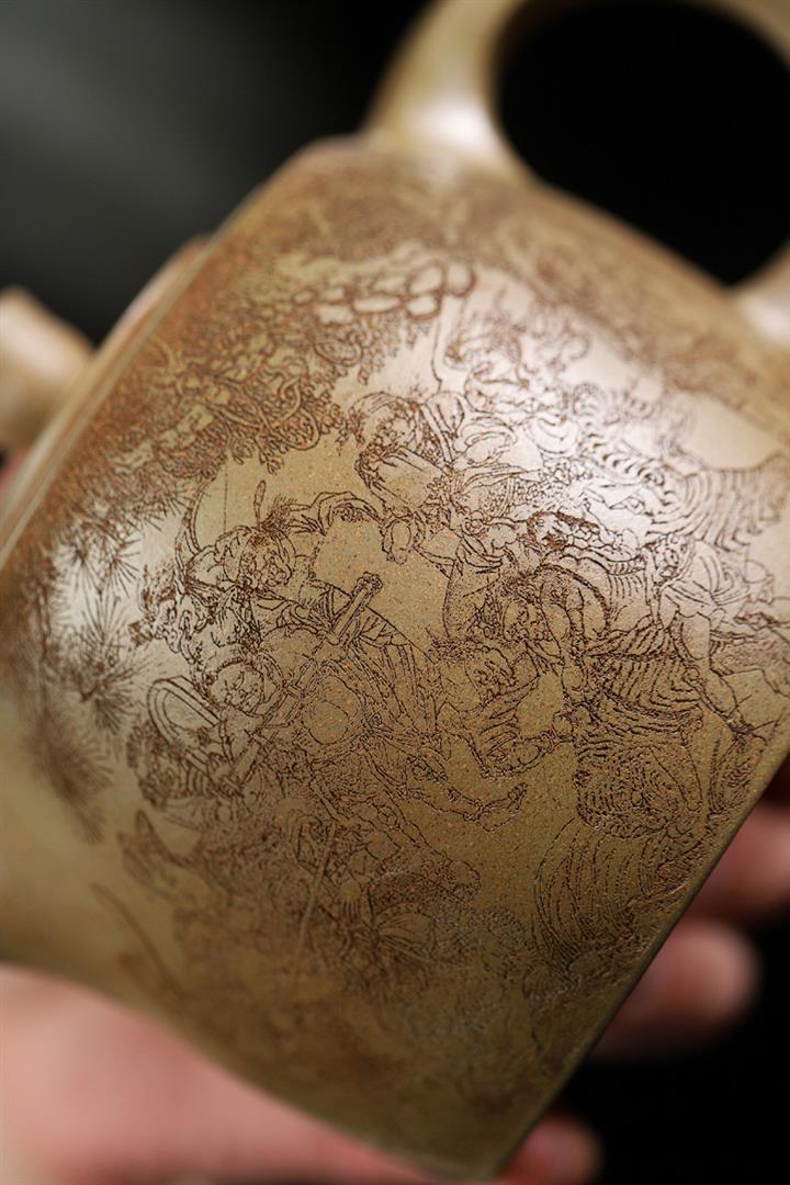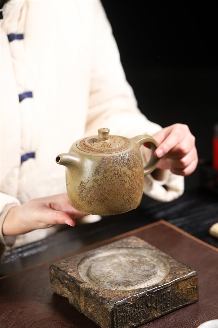 【泥料特點】砂土氣重,似淳實農民,日久使用,漸露鋒芒,養成變化,溫潤莊重。紫砂是壹種雙重氣孔結構的多孔性材質,氣孔微細,密度高。用紫砂壺沏茶,不失原味,且香不渙散,得茶之真香真味。紫砂使用越久,壺身色澤越發光亮照人,氣韻溫雅。紫砂壺長久使用器身會因撫摸擦拭,變得越發溫潤光澤。