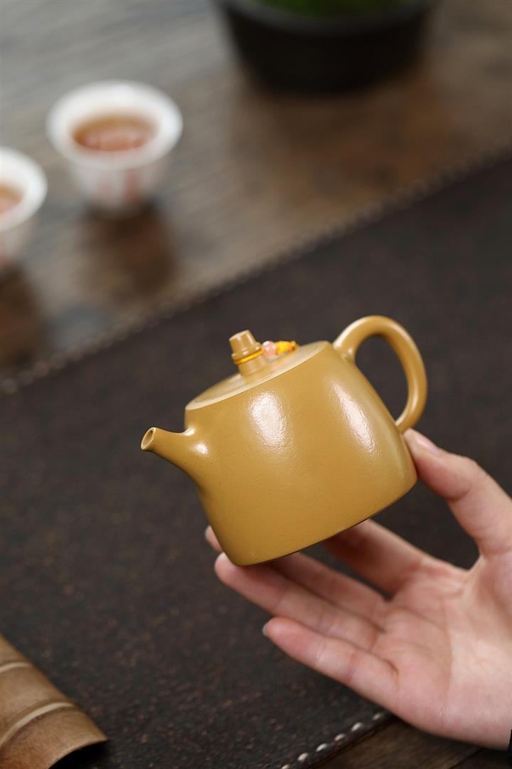 【作品介紹】此款壺形線條流暢,壺把,壺嘴,壺身壹氣呵成栩栩如生,是收藏把玩的好壺,泥料色澤古樸典雅,日久使用,漸露鋒芒,養成變化快,溫潤莊重,用其泡茶,使用的年代久,壺身就溫潤,泡出來的茶湯也就醇郁芳馨。