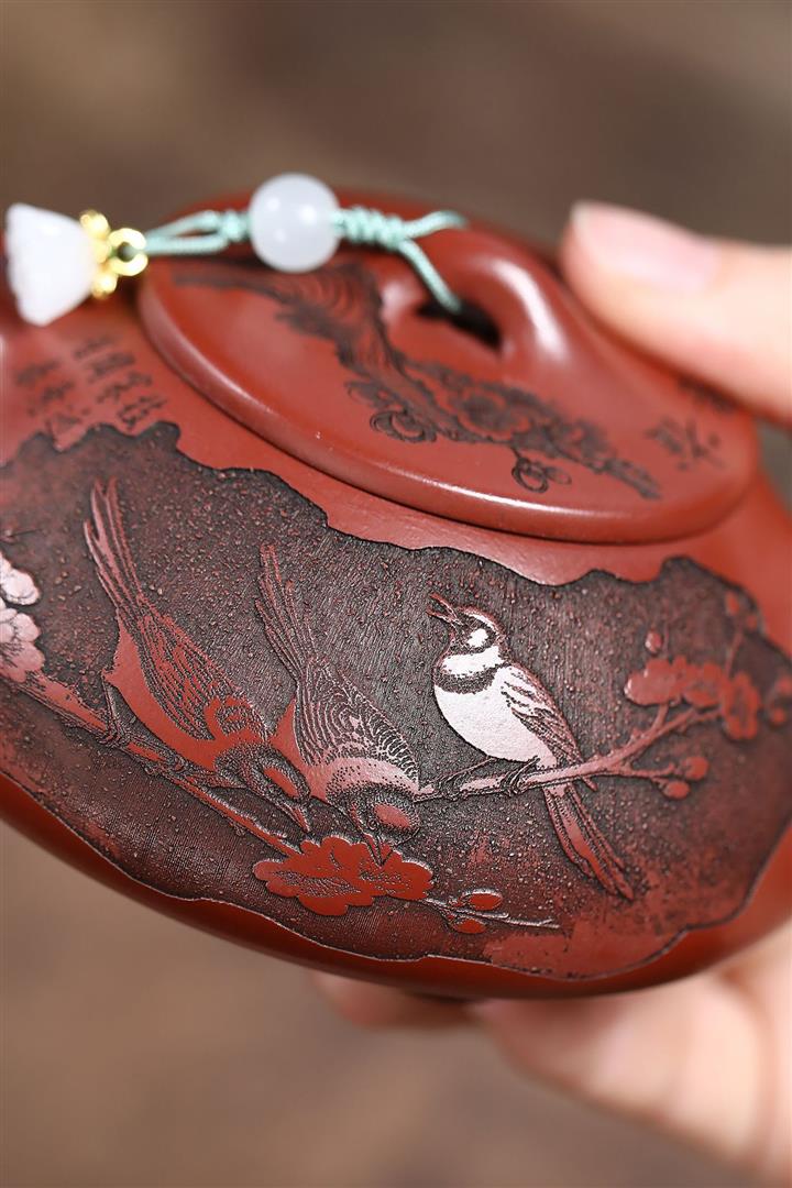 【泥料特點】砂土氣重,似淳實農民,日久使用,漸露鋒芒,養成變化,溫潤莊重。紫砂是壹種雙重氣孔結構的多孔性材質,氣孔微細,密度高。用紫砂壺沏茶,不失原味,且香不渙散,得茶之真香真味。紫砂使用越久,壺身色澤越發光亮照人,氣韻溫雅。紫砂壺長久使用器身會因撫摸擦拭,變得越發溫潤光澤。